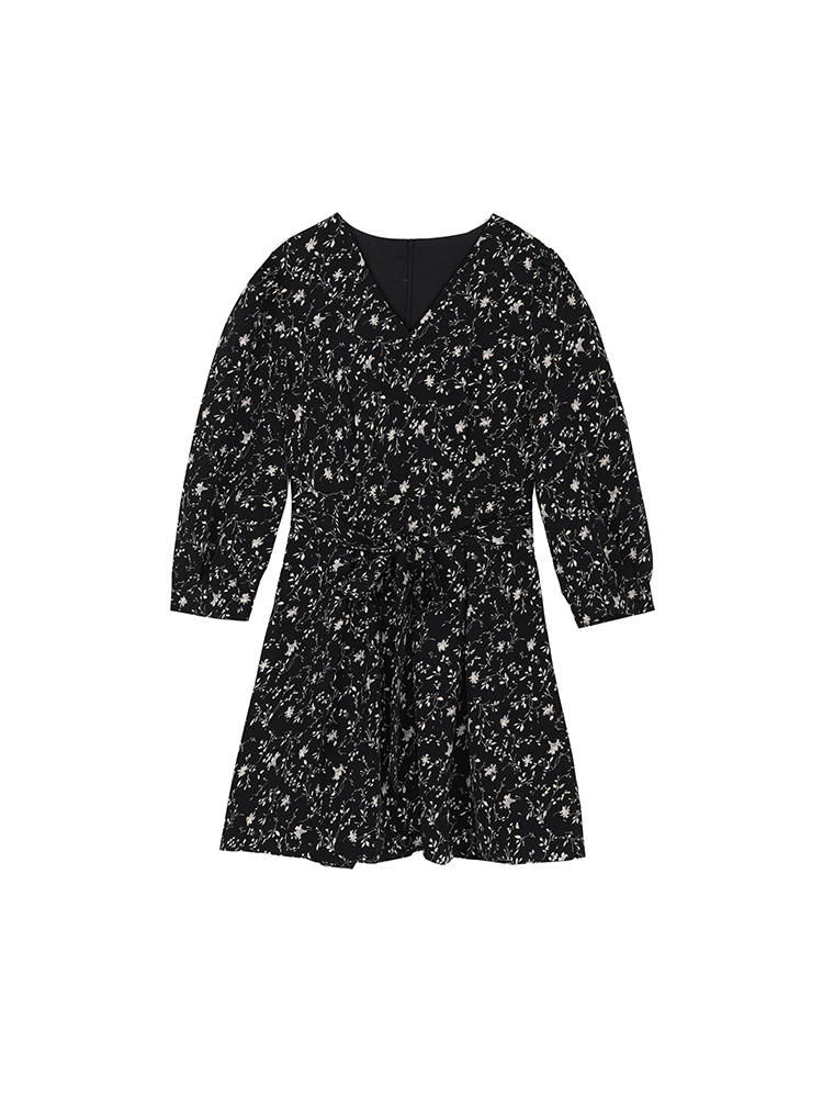เดรสวินเทจลายดอกไม้ 2020 ฤดูร้อนใหม่กระโปรงลายดอกไม้สีดำ
