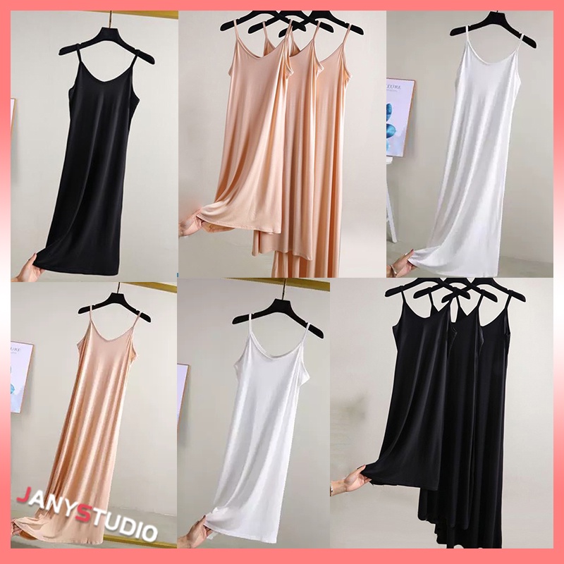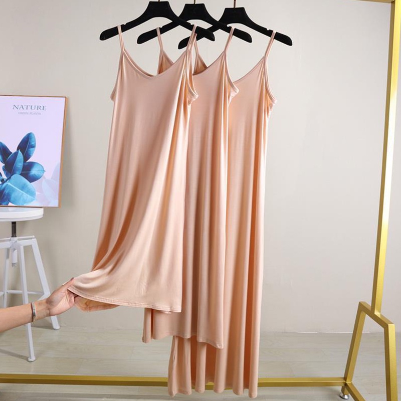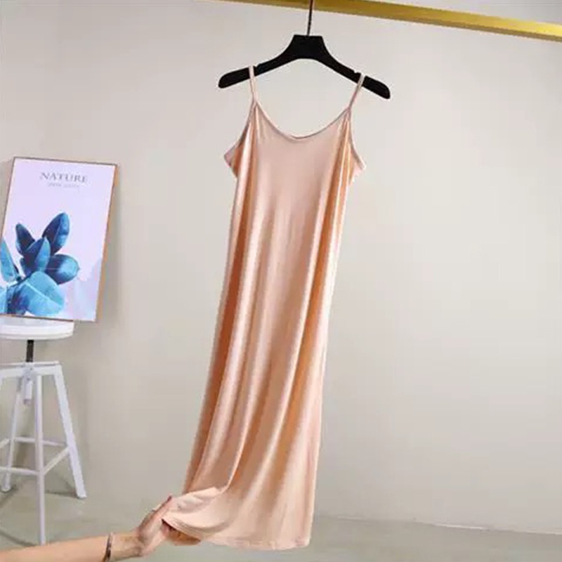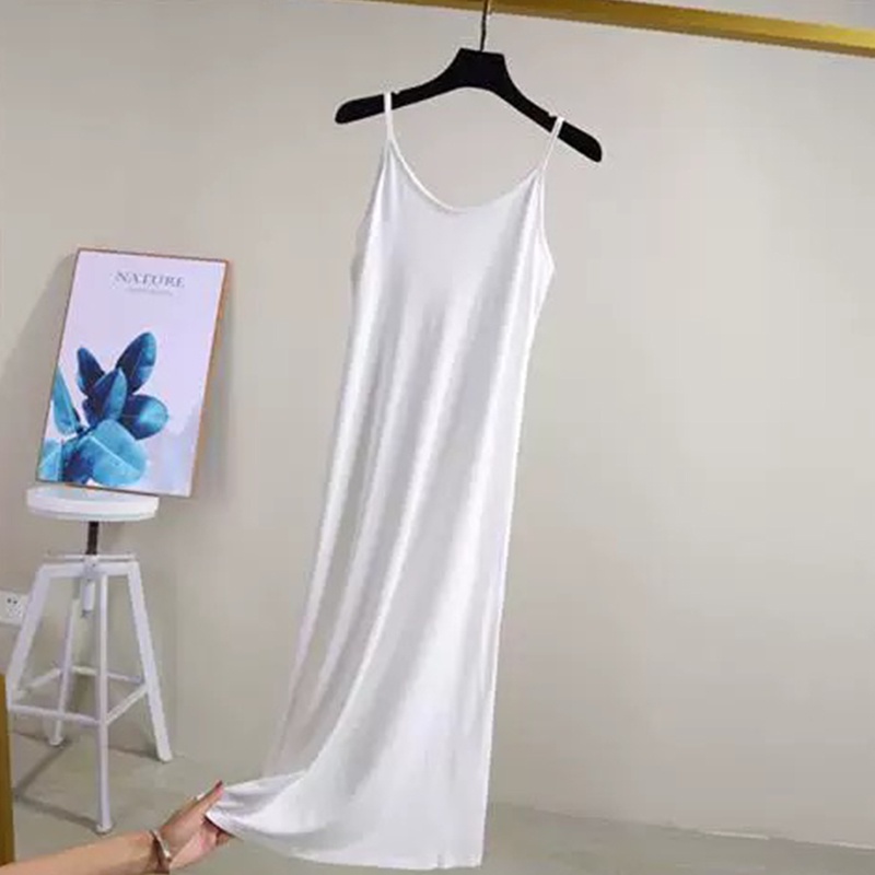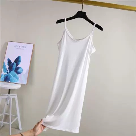 เดรสสายเดี่ยวฤดูร้อน เดรสทรงเอ ชุดนอน หลวมและสบาย สามารถใช้เป็นซับในหรือกระโปรงด้านล่างได้