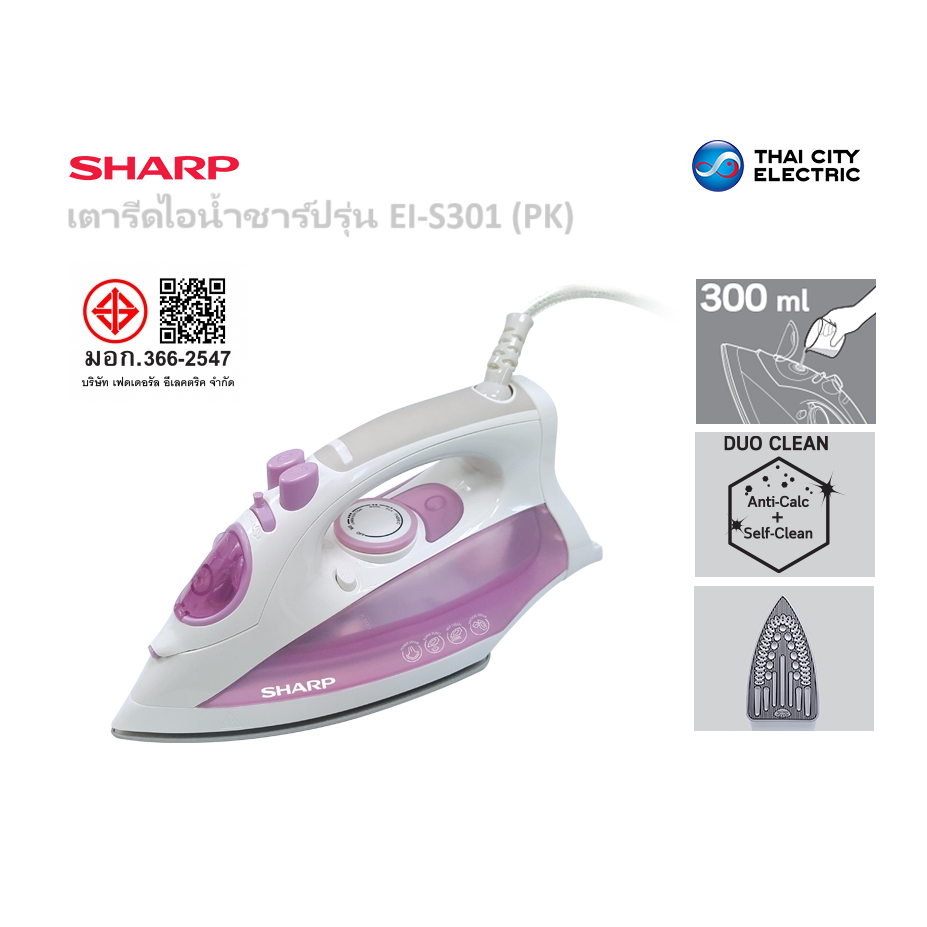 เตารีดไอน้ำ Sharp (2000 วัตต์, สีชมพู) รุ่น EI-S301 รุ่นใหม่ รับประกันศูนย์