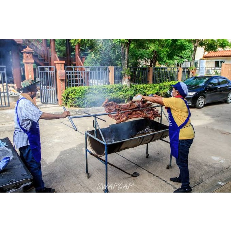เตาหมูหัน ใช้ปิ้งหมูหันคละสีหรือดำ ใช้ปิ้งหันหมูเนื้อหอมกรอบปรับระดับได้ ขนาดใหญ่200ลิตร 60*90*80 ซม