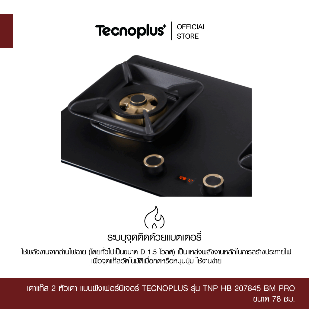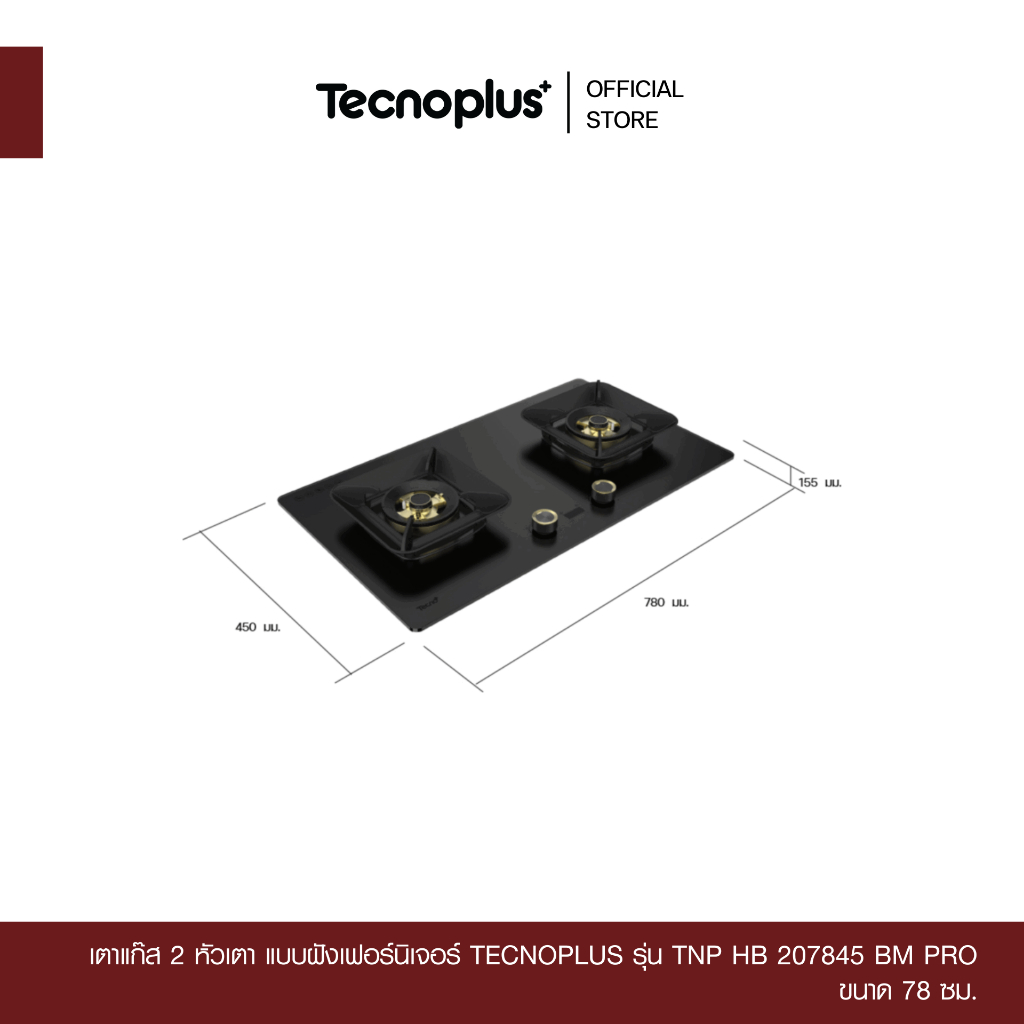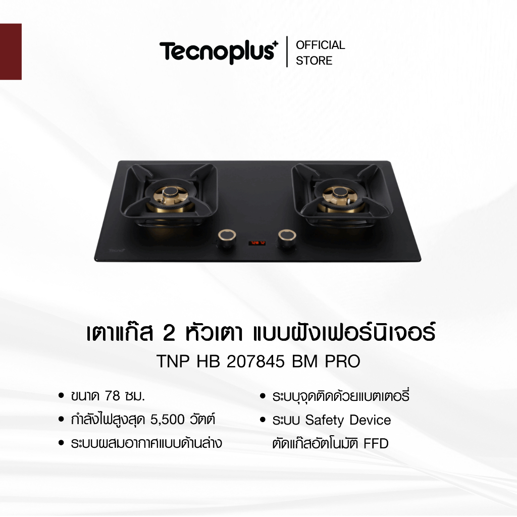 เตาแก๊ส 2 หัวเตา แบบฝังเฟอร์นิเจอร์ Tecnoplus รุ่น TNP HB 207845 BM PRO