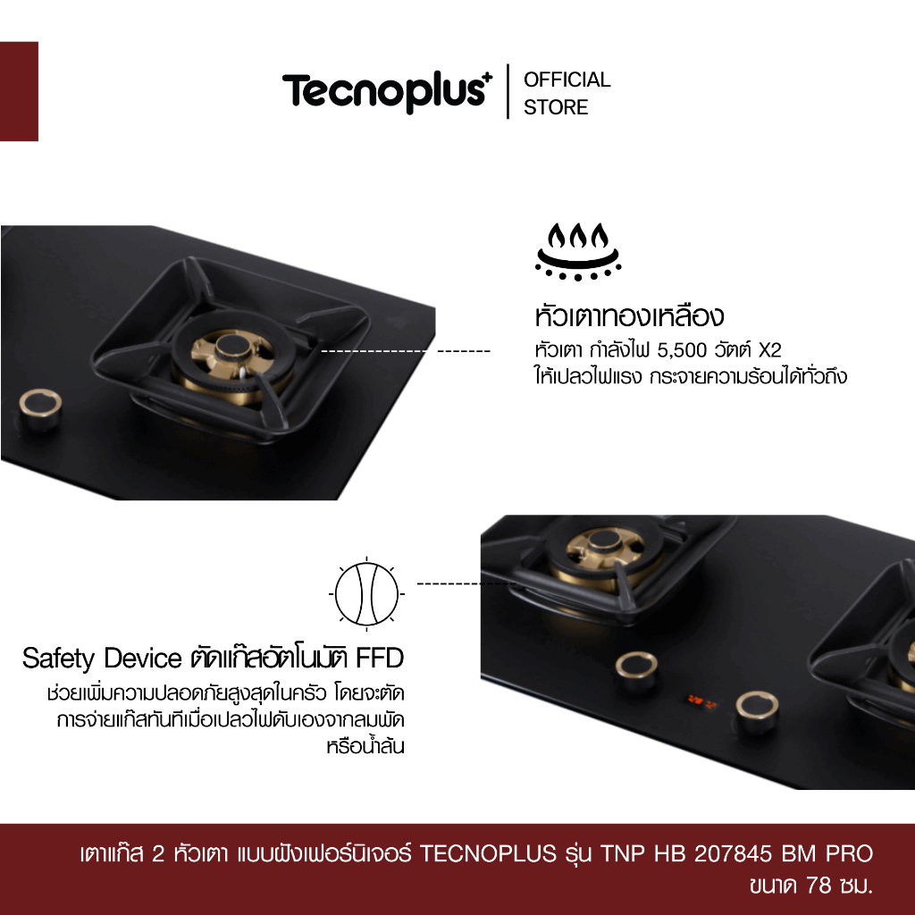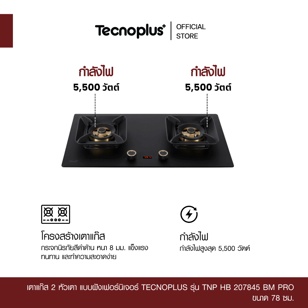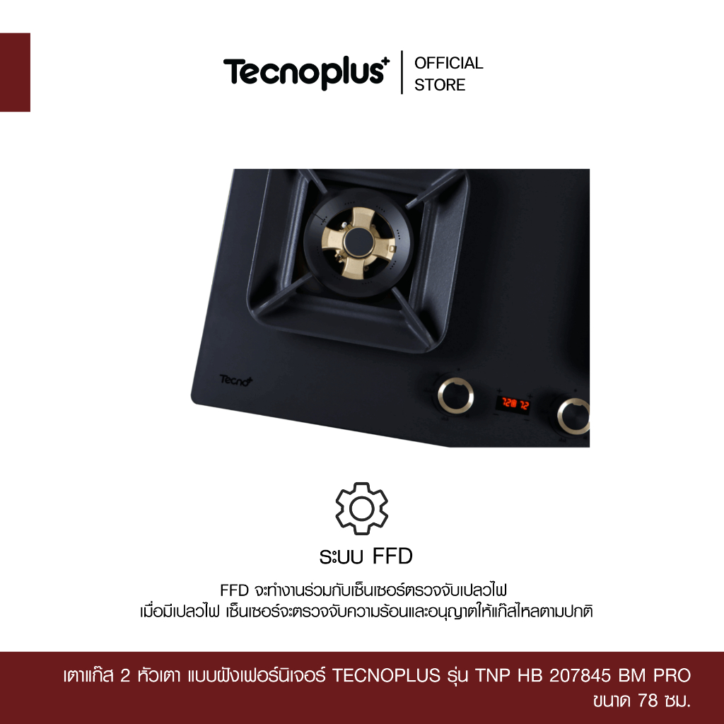 เตาแก๊ส 2 หัวเตา แบบฝังเฟอร์นิเจอร์ Tecnoplus รุ่น TNP HB 207845 BM PRO