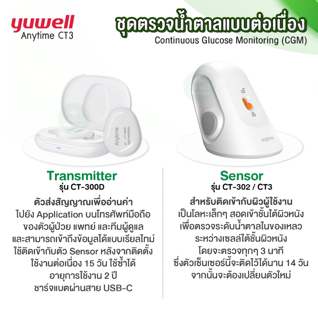 เทคโนโลยีใหม่ล่าสุด🔥YUWELL เครื่องตรวจวัดระดับน้ำตาล แบบต่อเนื่อง แปะแขน CGM รุ่น CT3 รับประกัน 2 ปี บอกค่าทุก 3 นาที