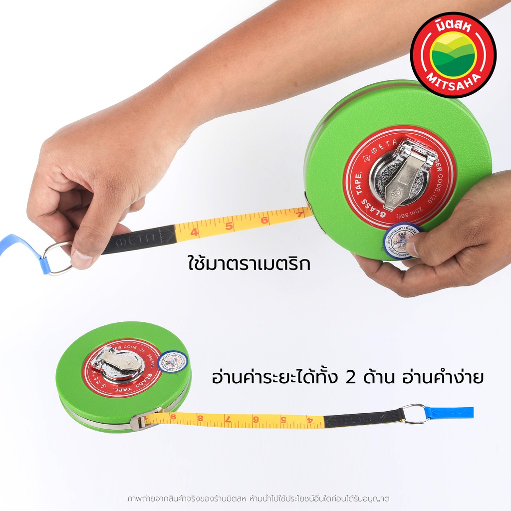 เทปวัดที่ สายวัดที่ สายวัดที่ใยแก้ว META ขนาด 20 เมตร Glass tape Fiberglass Measuring Tape length 20 m สายวัดที่ มิตสห™️