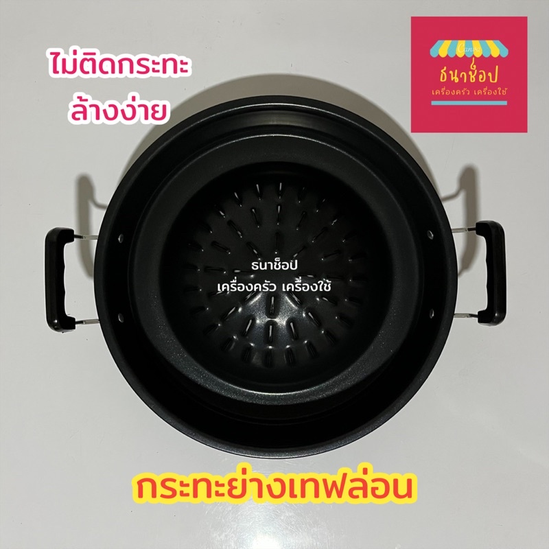 เทฟล่อน กระทะหมูกระทะเทฟล่อน กระทะย่างเกาหลีเทฟล่อน กระทะปิ้งย่าง 30 cm เตาหมูกระทะ KoreanBBQ