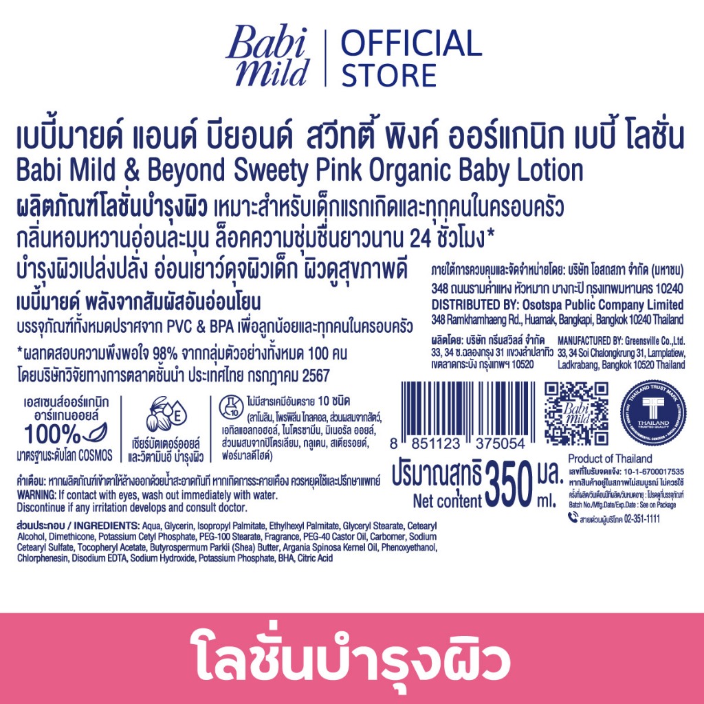เบบี้มายด์ โลชั่น สวีทตี้พิงค์ พลัส 350 มล. / Babi Mild Sweety Pink Plus Lotion 350 ml