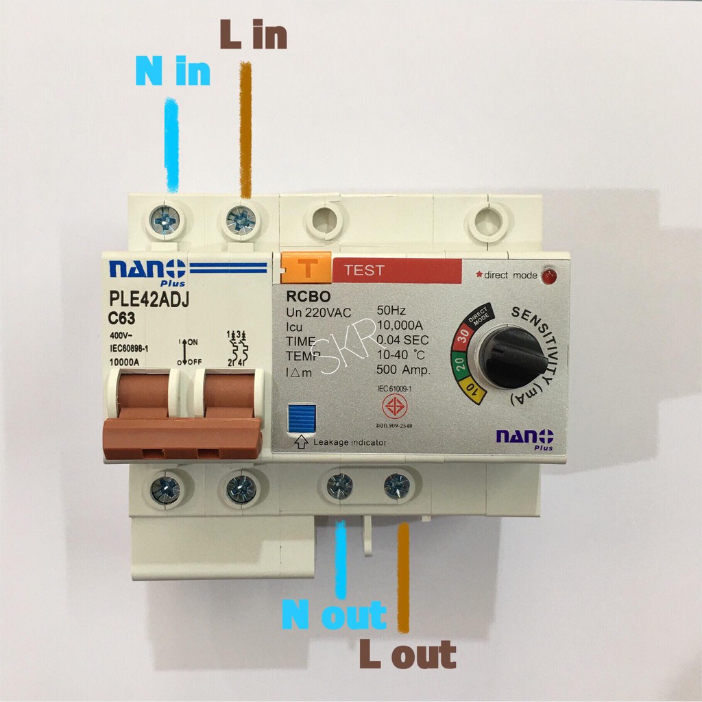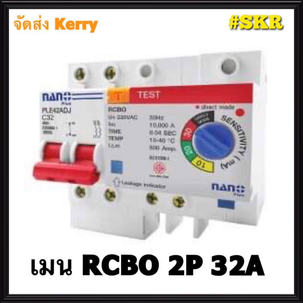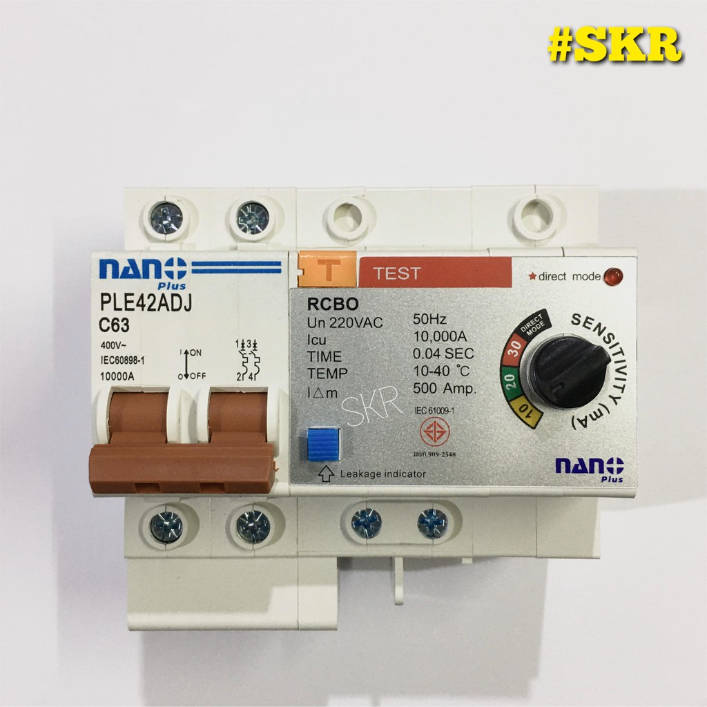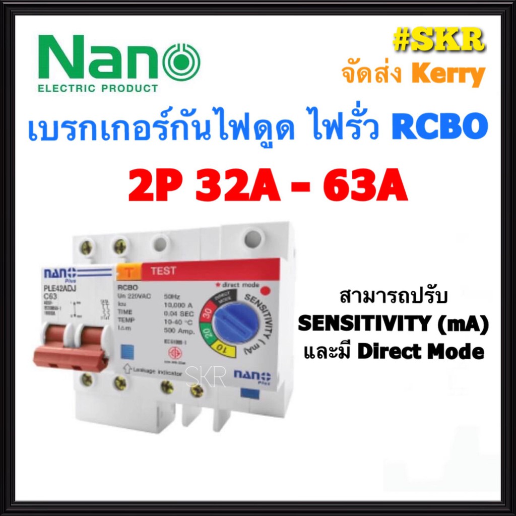 เบรกเกอร์กันดูด 2P 32A 50A 63A RCBO NANO (ปรับSENSITIVITYได้ 10-30mA) 10kA 240-415V ป้องกันไฟรั่ว ไฟดูด ไฟกระแสเกิน