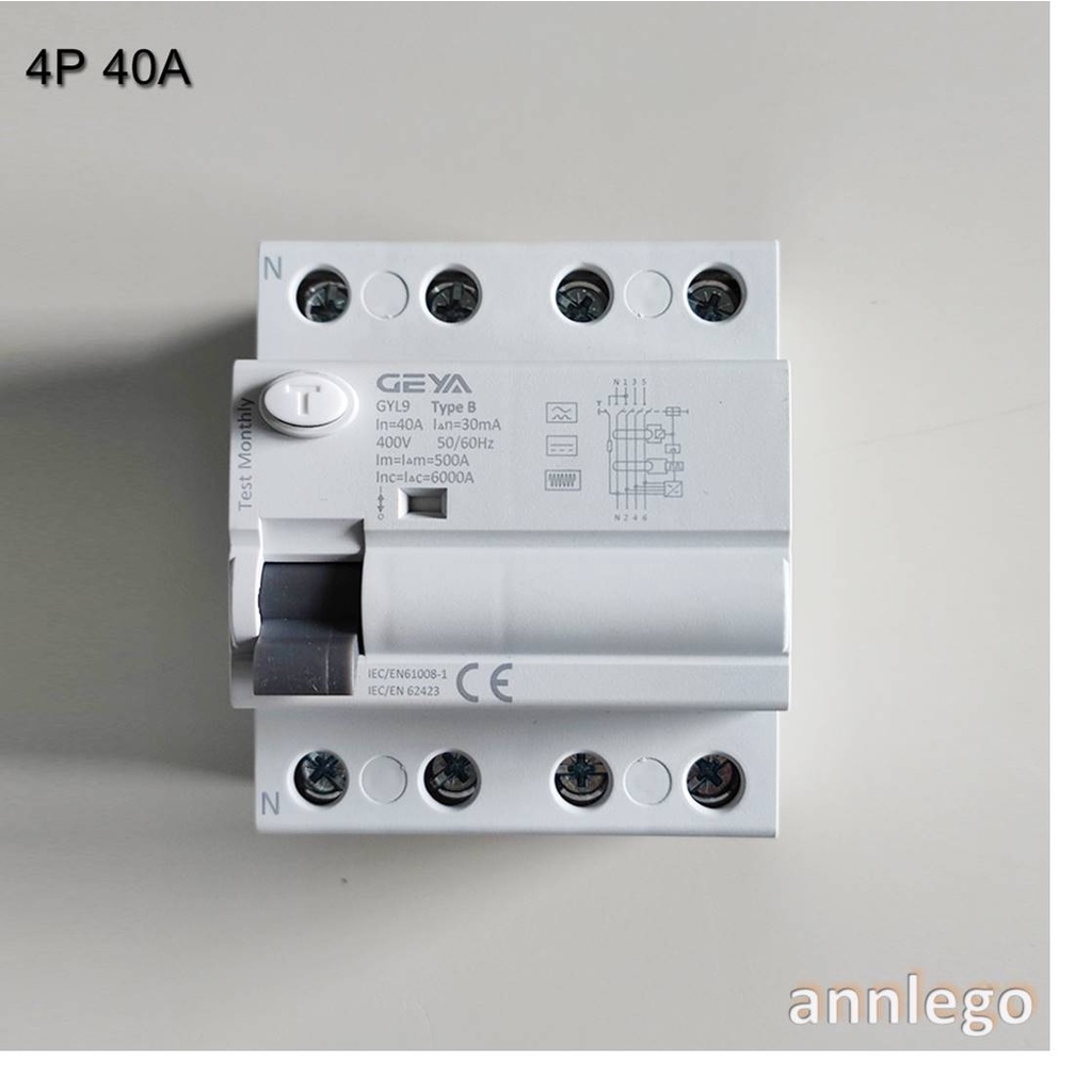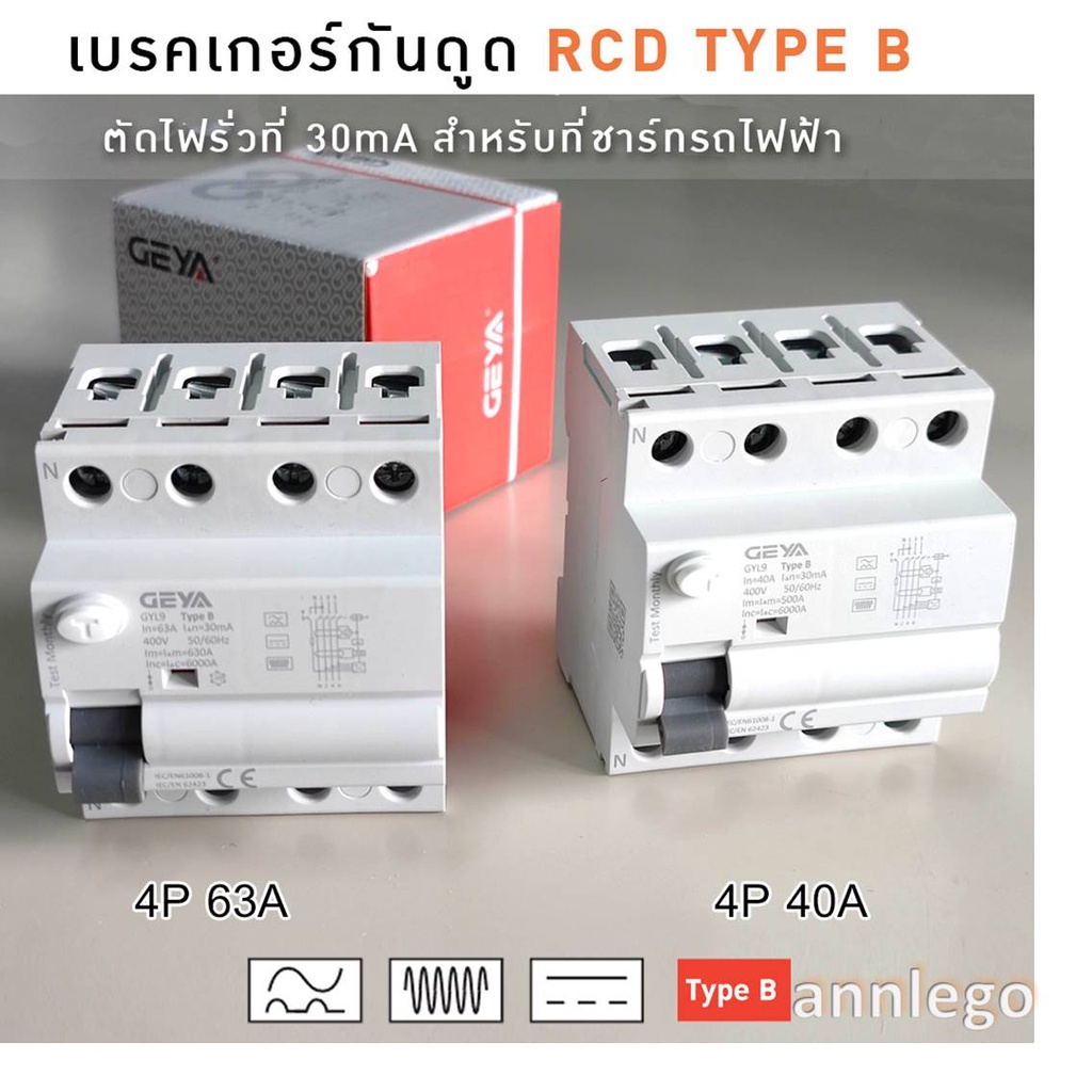 เบรคเกอร์กันดูด RCCB TYPE B สำหรับงานตู้ชาร์จรถไฟฟ้า (EV Car) ยี่ห้อ GEYA ขนาด 2P และ 4P (32A-63A)