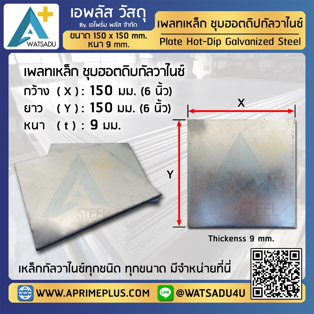 เพลทเหล็ก ชุบฮอตดิบกัลวาไนซ์ HDG 150 x 150 mm. (6" นิ้ว)