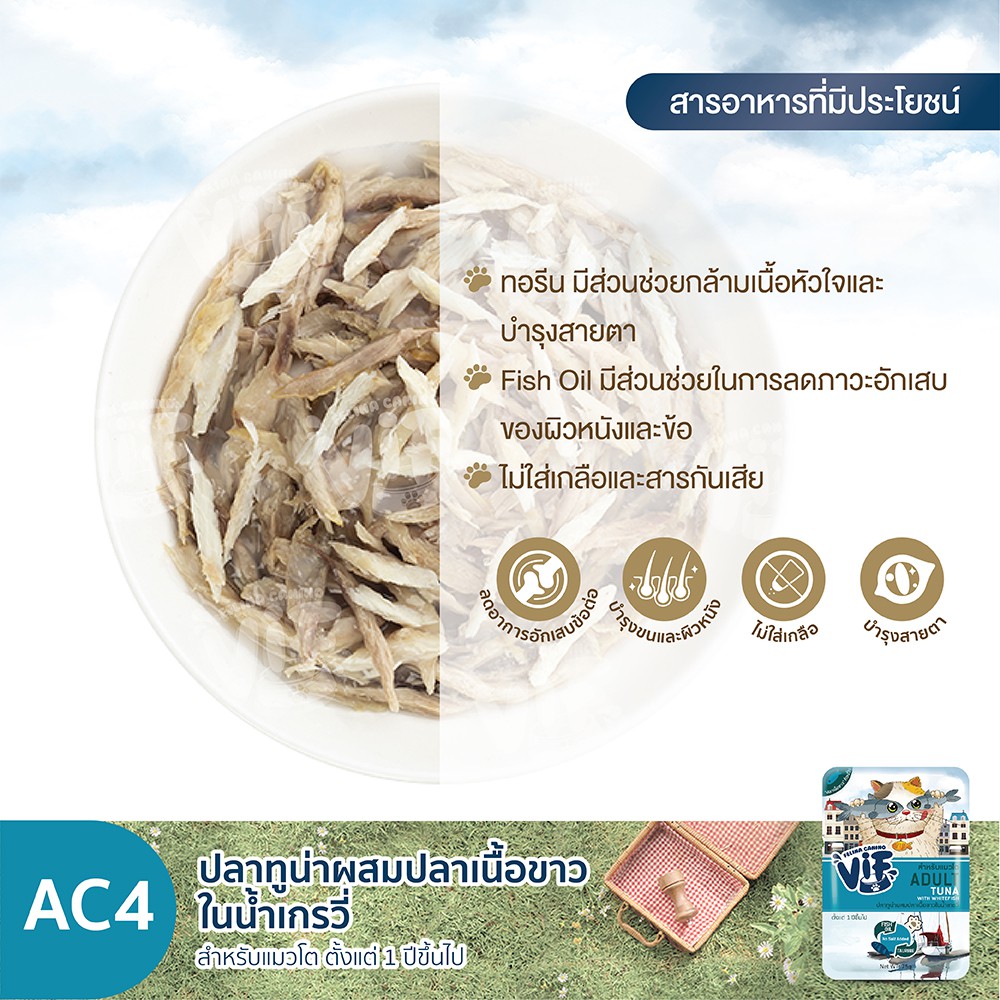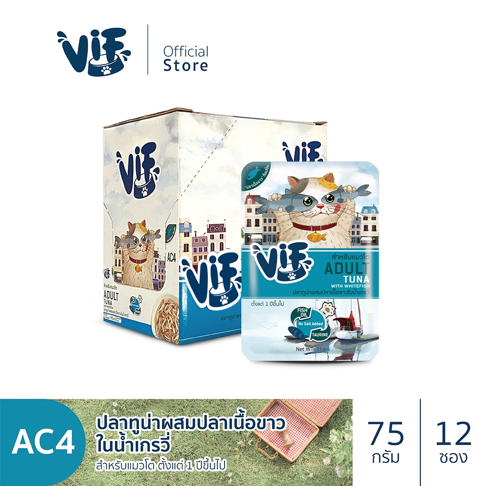 วิฟ (อาหารสำหรับแมว) : C4 ปลาทูน่าผสมปลาเนื้อขาวในน้ำเกรวี่ (สำหรับแมวโต)