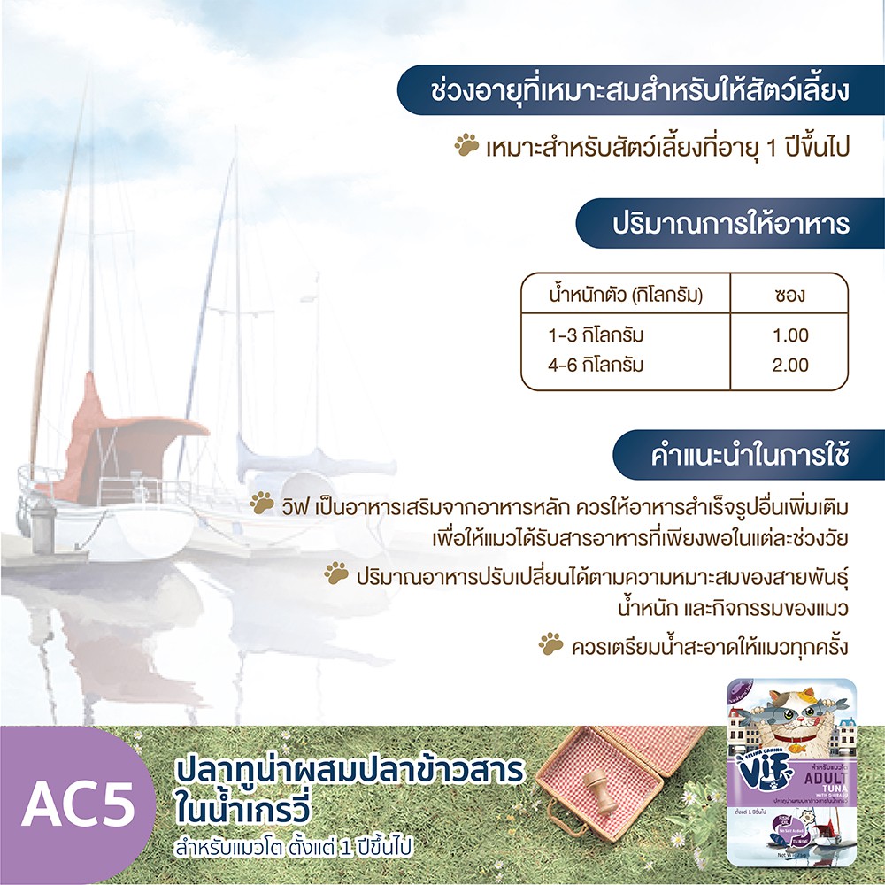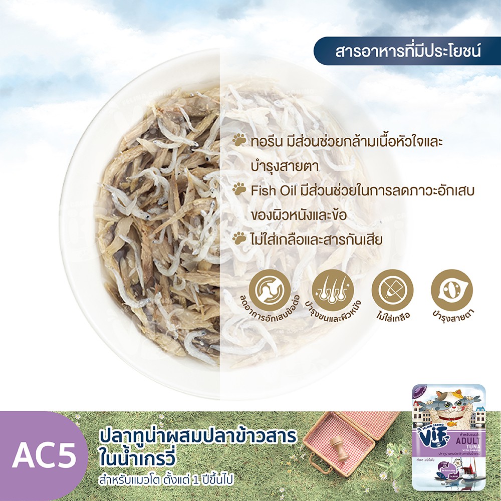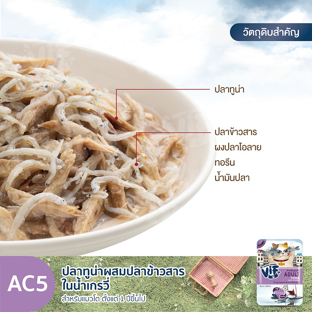 วิฟ (อาหารสำหรับแมว) : C5 รสปลาทูน่าผสมปลาข้าวสารในน้ำเกรวี่ (สำหรับแมวโต)