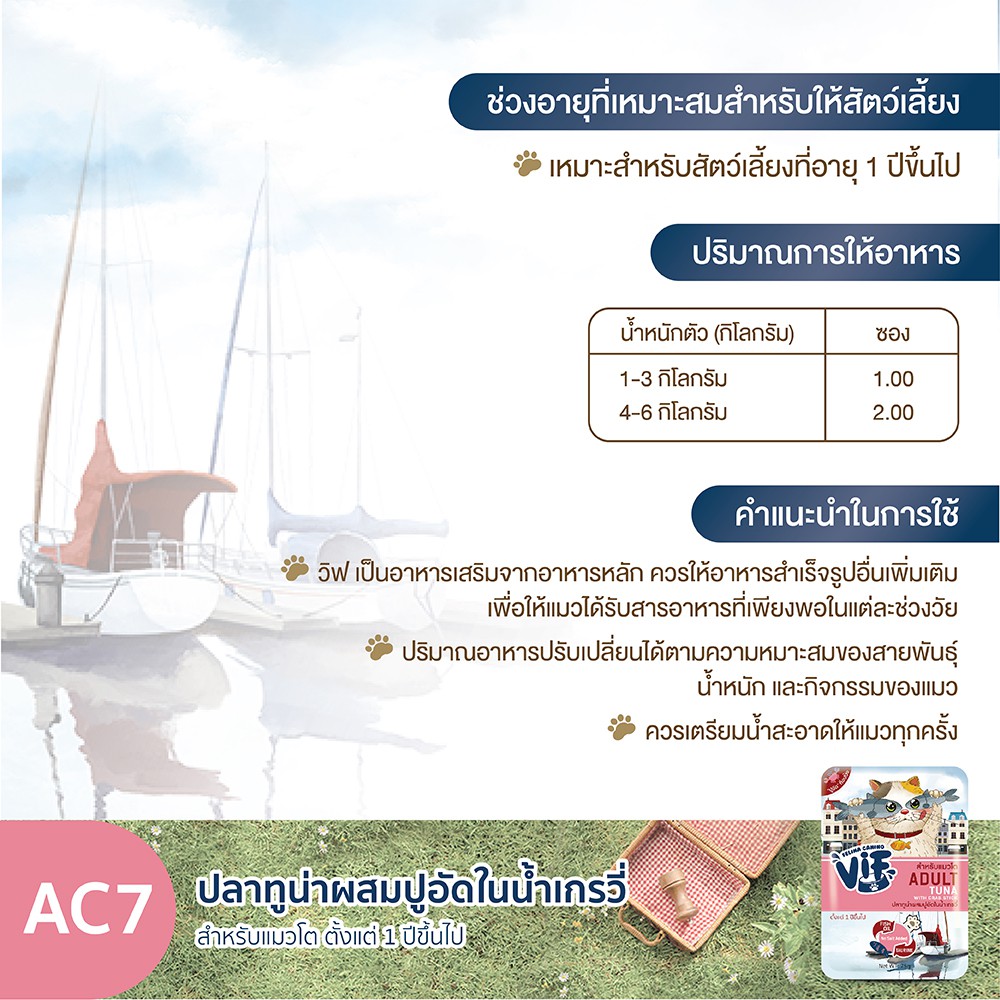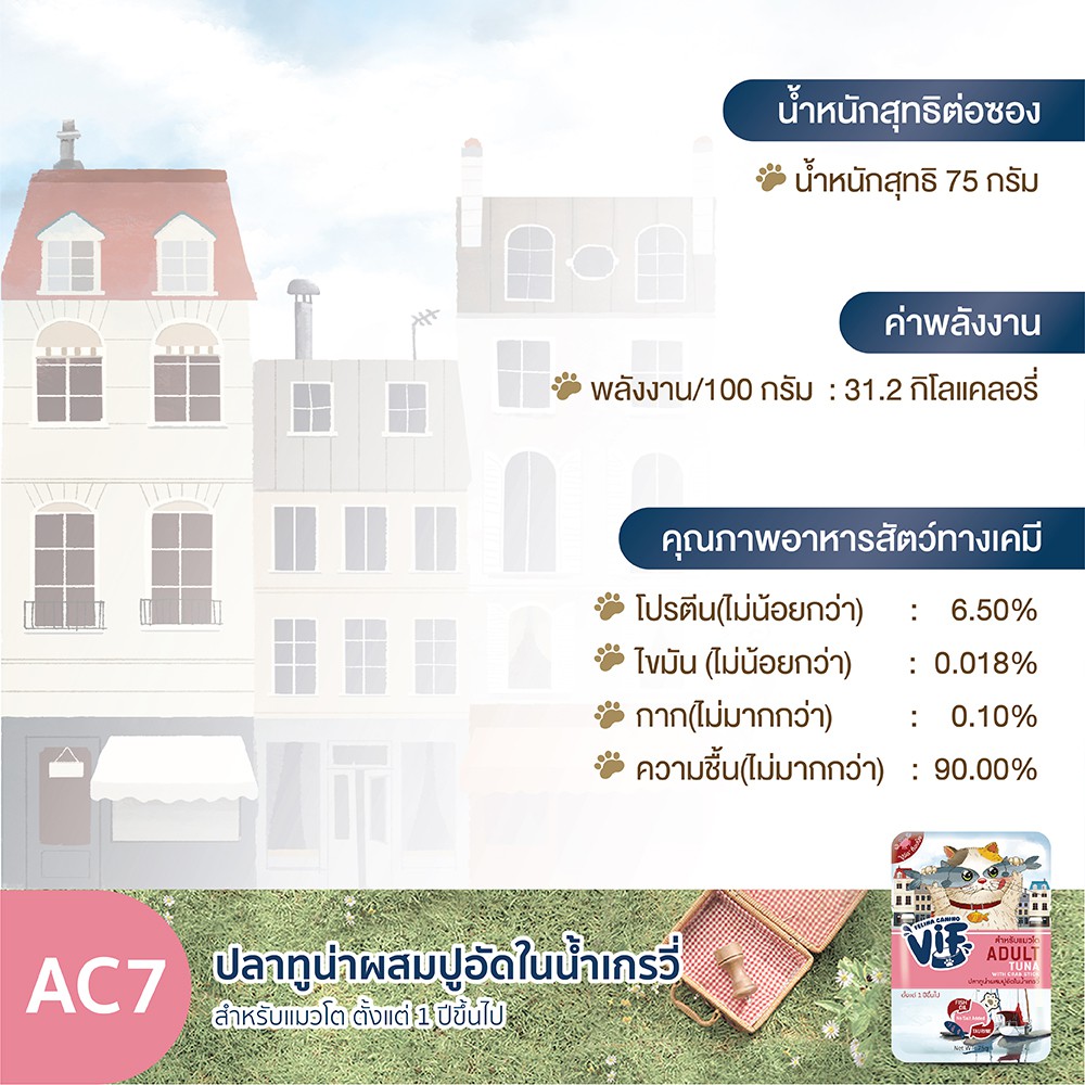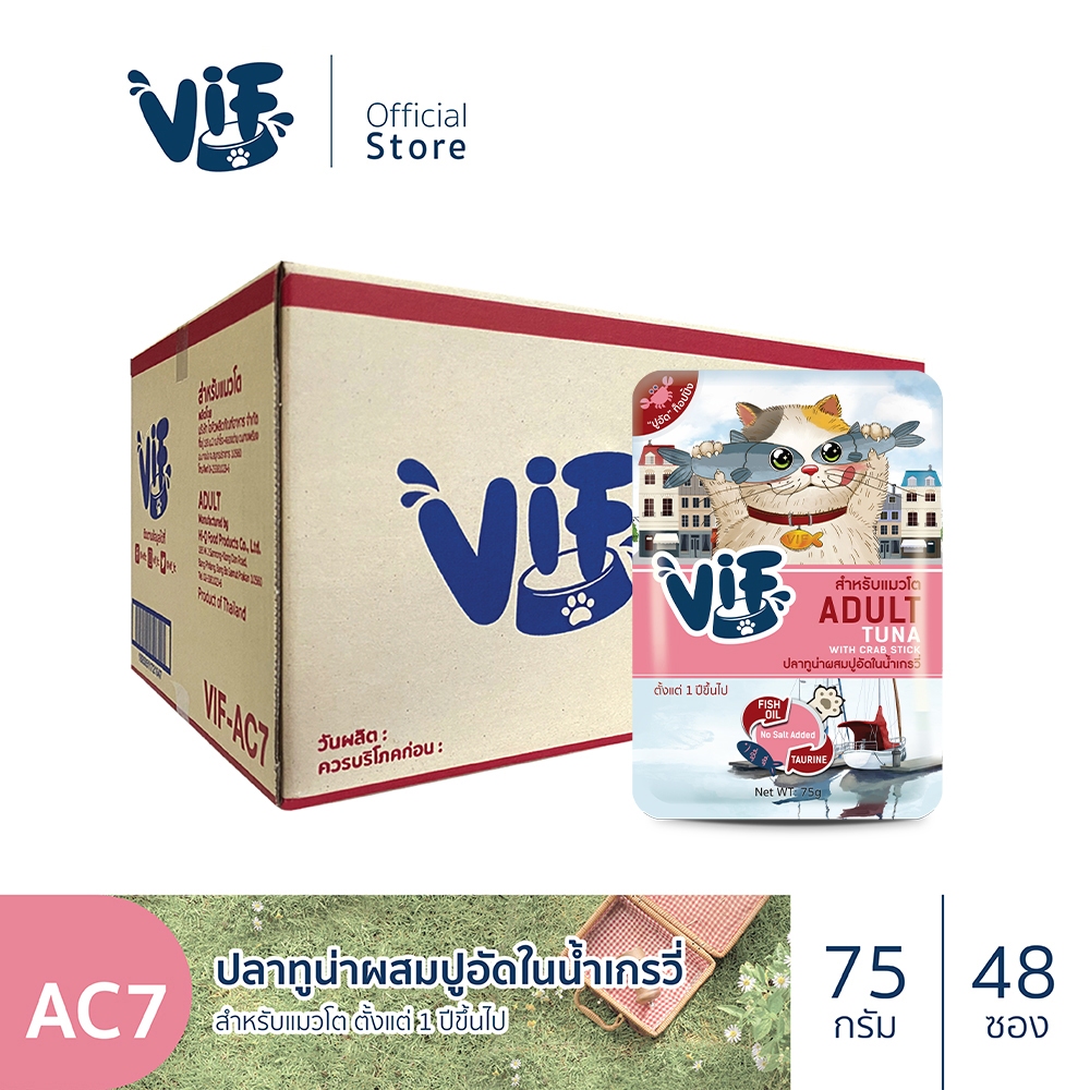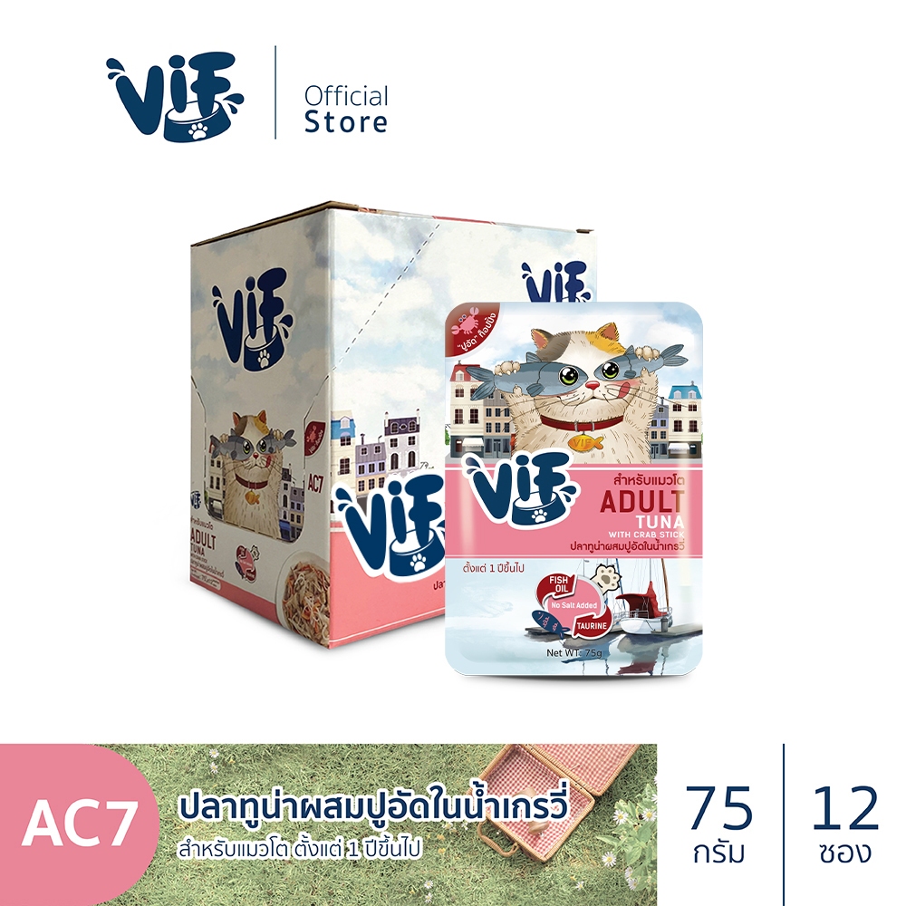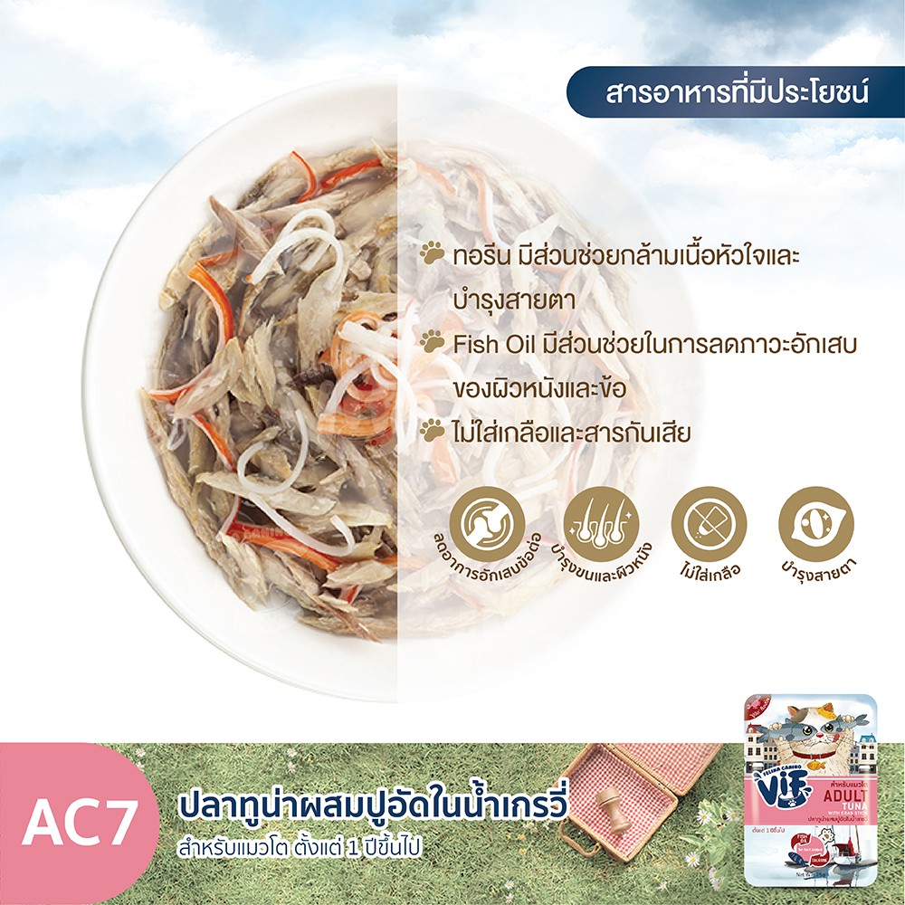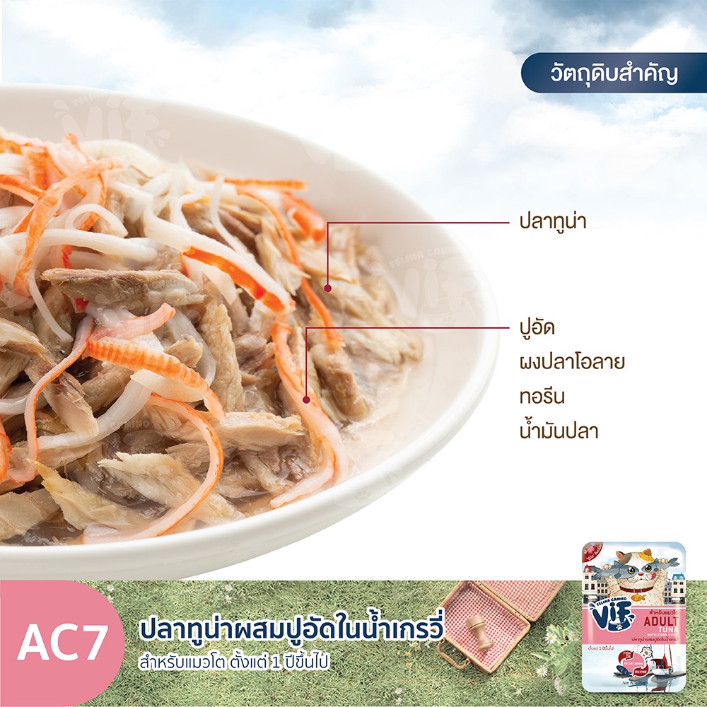 วิฟ (อาหารสำหรับแมว) : C7 ปลาทูน่าผสมปูอัดในน้ำเกรวี่ (สำหรับแมวโต )