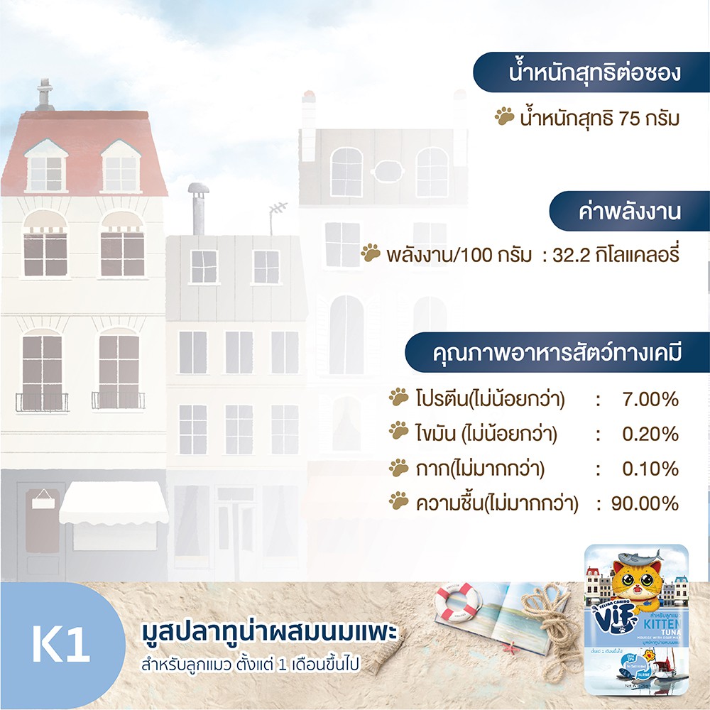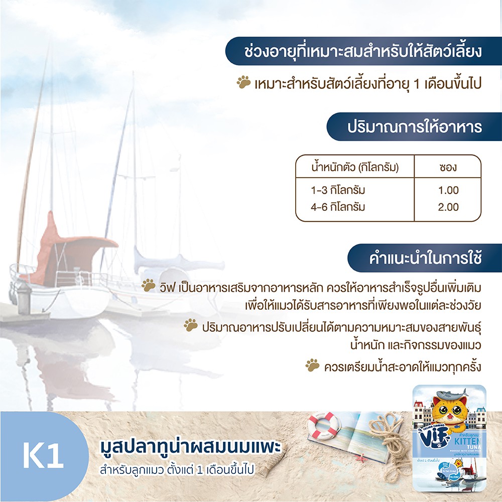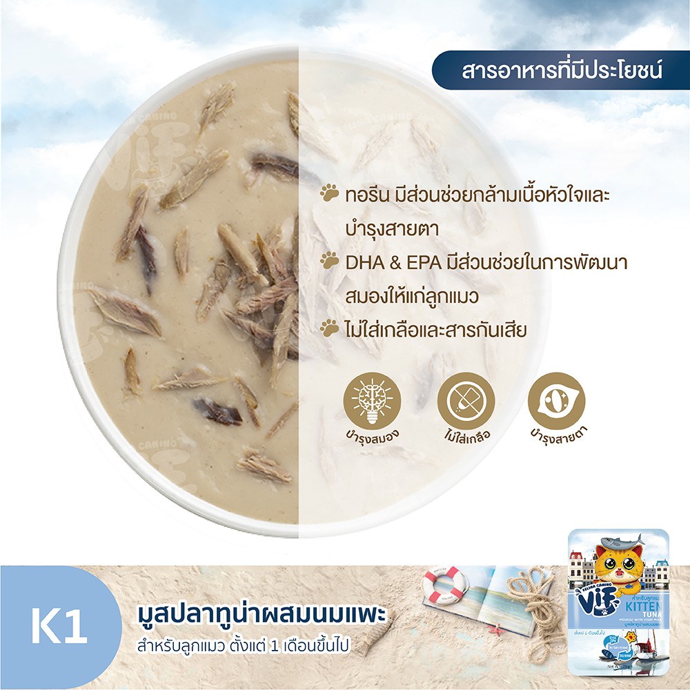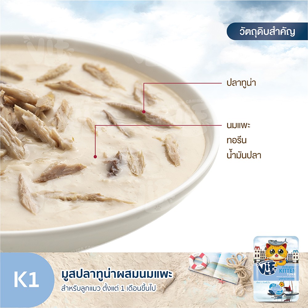 วิฟ (อาหารสำหรับแมว) : K1 มูสปลาทูน่าผสมนมแพะ (สำหรับลูกแมว)