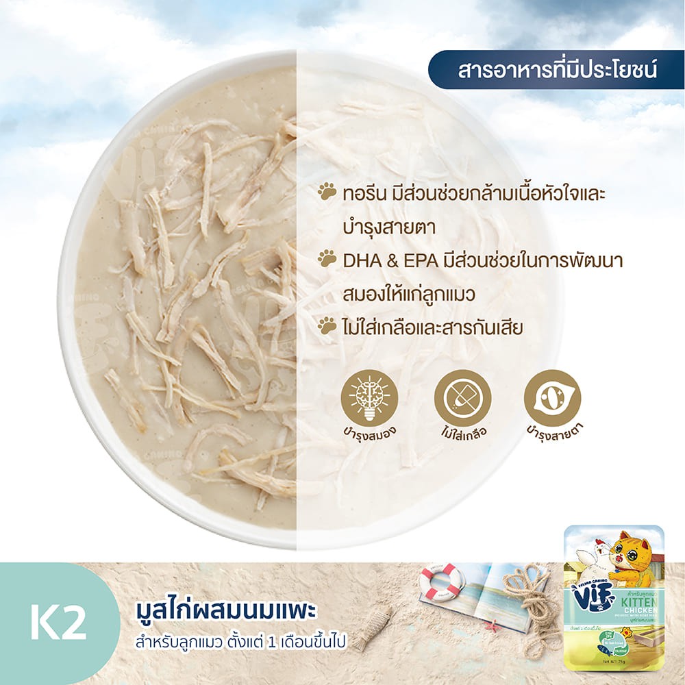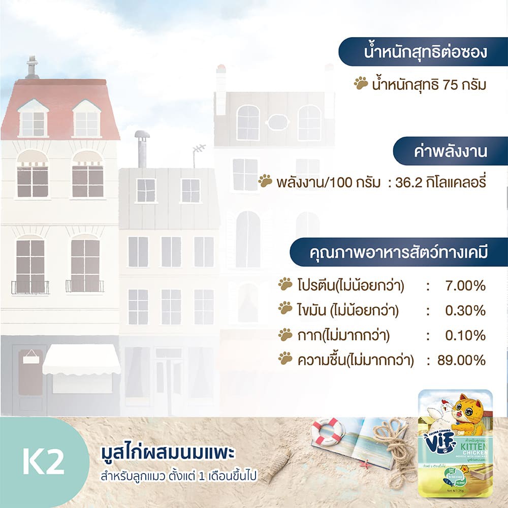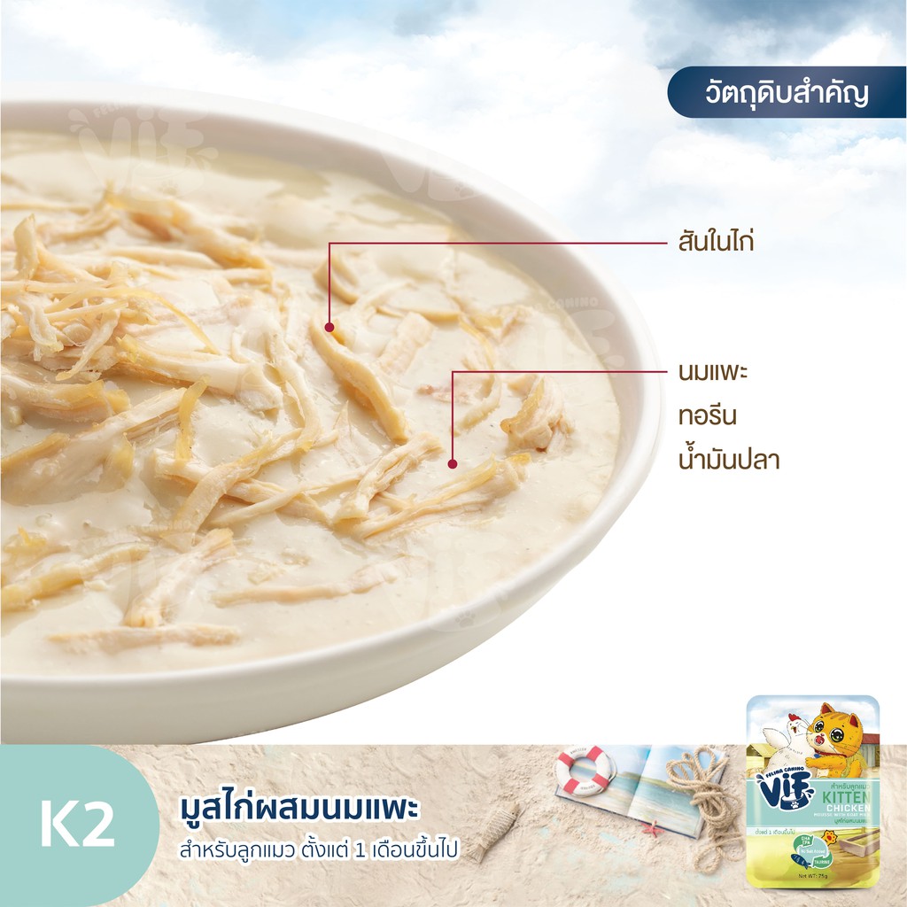 วิฟ (อาหารสำหรับแมว) : K2 มูสไก่ผสมนมแพะ (สำหรับลูกแมว)