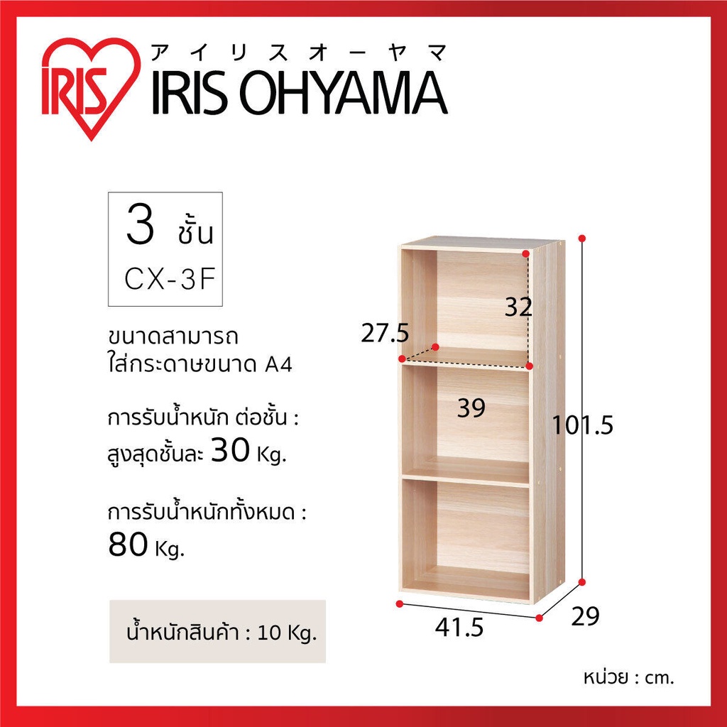 เฟอร์นิเจอร์ ชั้นวางของ แบบช่องสี่เหลี่ยม 3 ชั้น IRIS OHYAMA ไอริส โอยามะ รุ่น CX-3F สีเบจ ใช้งานได้เอนกประสงค์