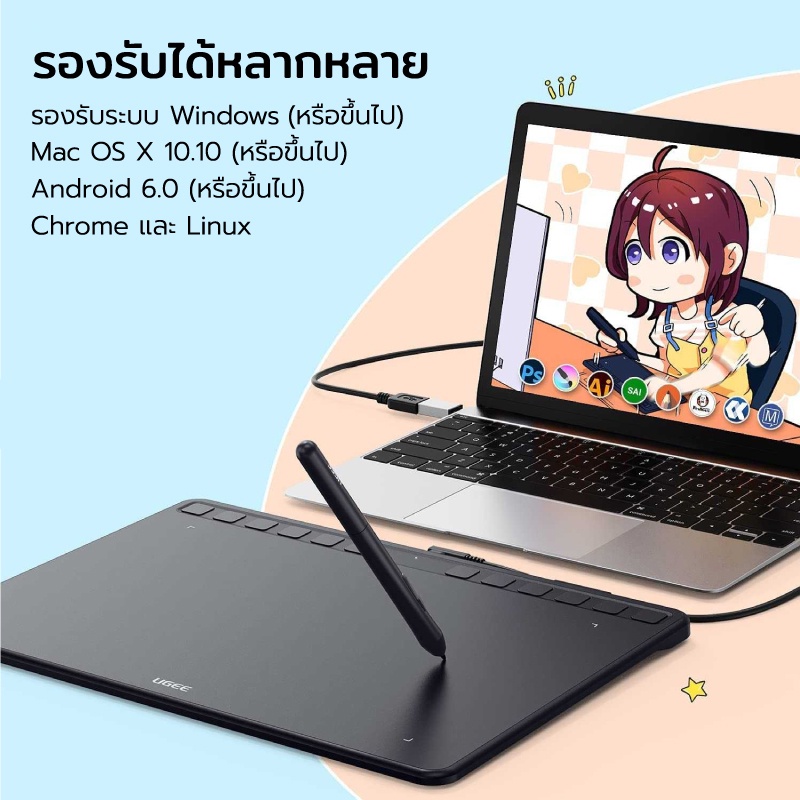เมาส์ปากกา UGEE S1060 (PC/android) ปากกาคอมพิวเตอร์ วาดภาพ ตกแต่งภาพ กราฟฟิกดีไซน์ ขนาด 10x6 นิ้ว แรงกด 8192