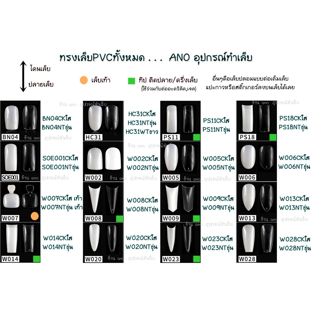 เล็บปลอม PVC เต็มเล็บ ทรงคอฟฟิน (ทรงบัลเล่ต์) กลาง สำหรับต่อเล็บ W005 (ซอง02)