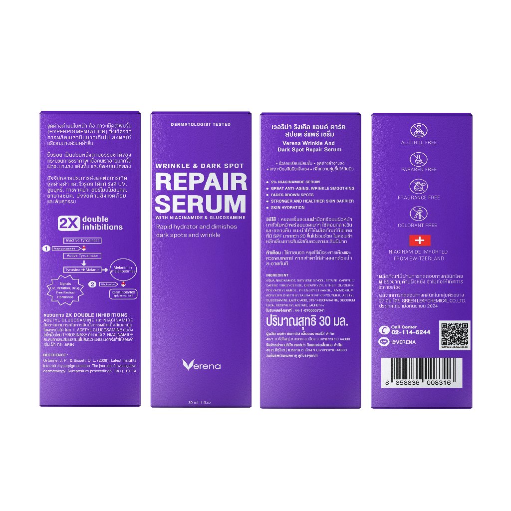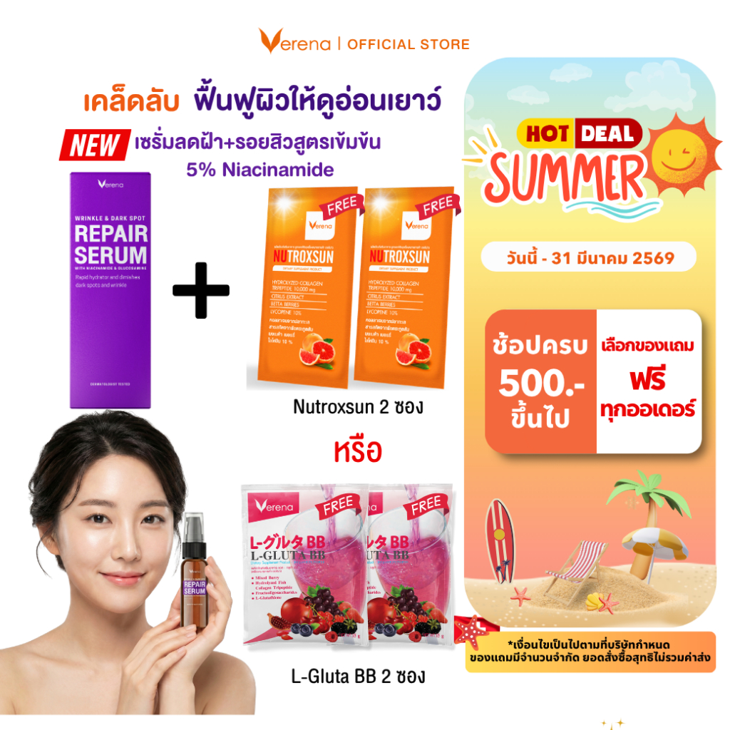 Verena Repair Serum เซรั่มลดริ้วรอย จุดด่างดำ ผิวกระจ่างใส 5% Niacinamide 30ml [ส่งไวมากคร๊าบ]