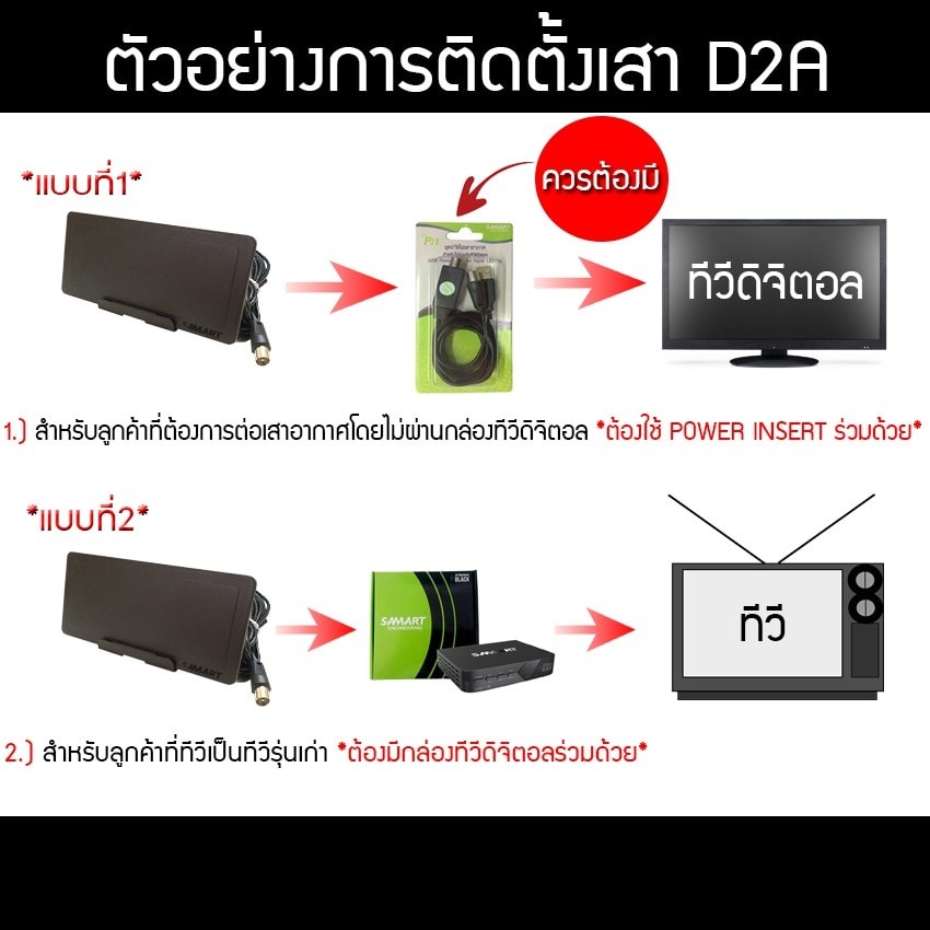 เสาอากาศทีวีดิจิตอล SAMART รุ่น D11AB มีสายในตัว ต่อได้กับทีวีและกล่องดิจิตอล(ส่งฟรี)