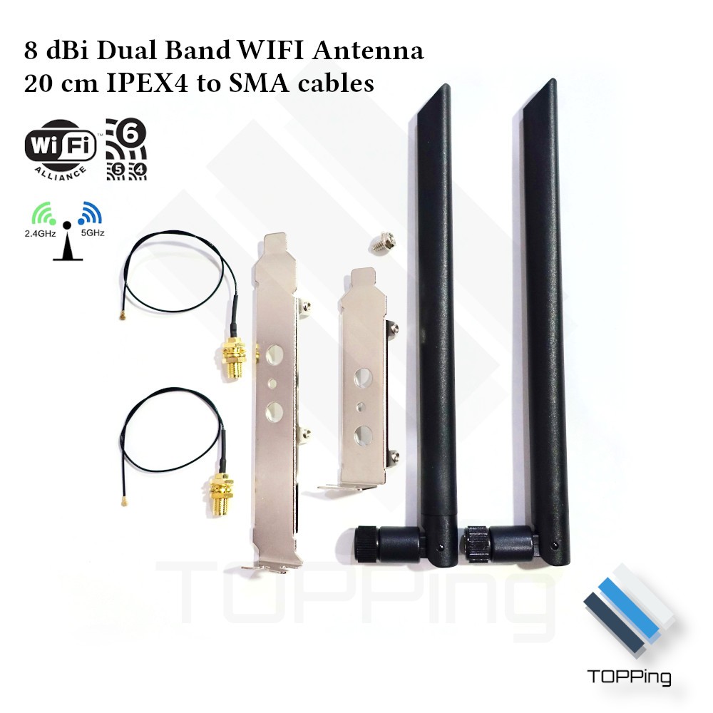 เสาไวไฟ 6dBi 8dBi Dual-Band WiFi Antenna รองรับ WiFI 6 พร้อมอุปกรณ์ ใช้กับการ์ด WiFi Intel AX200 AX210 ได้