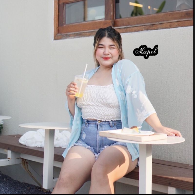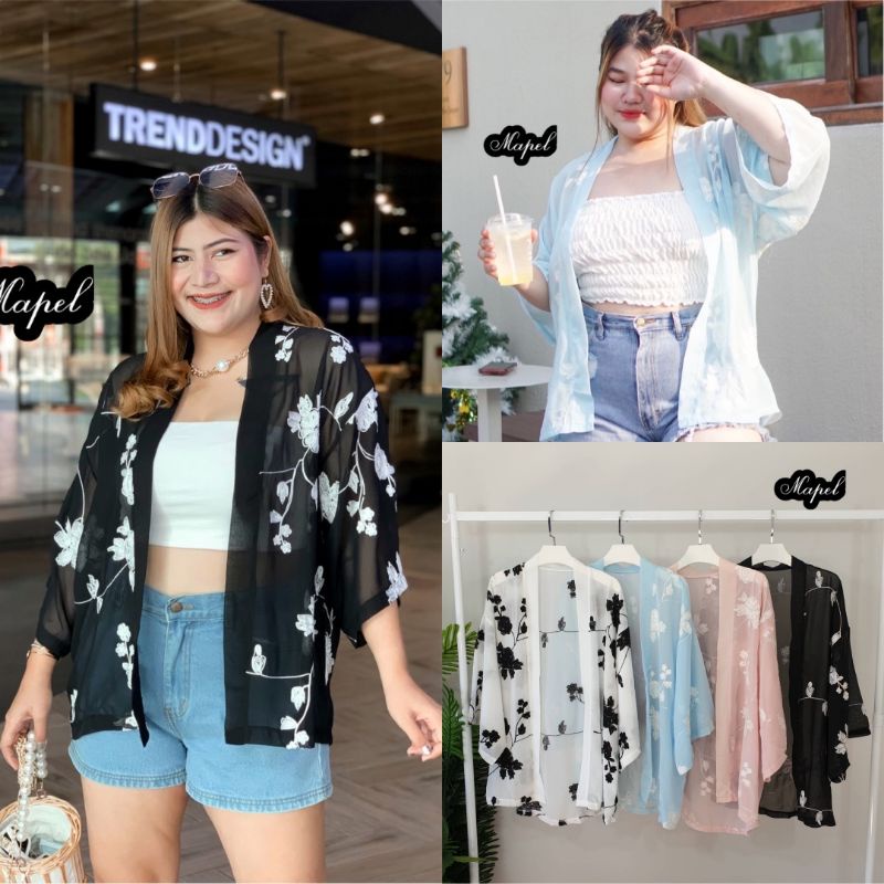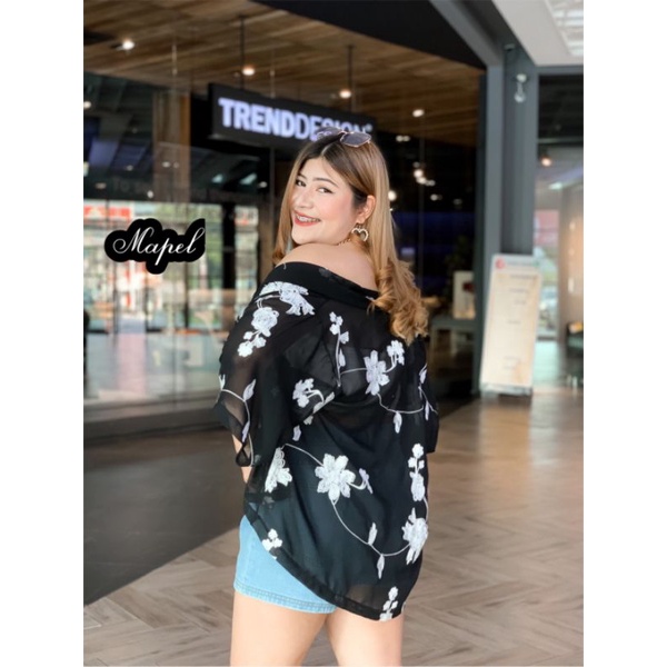 เสื้อคลุมซีทรู ไซส์ใหญ่ ปักลายดอกไม้ เที่ยวทะเล ใส่คลุมชิวๆ สาวอวบ Maple