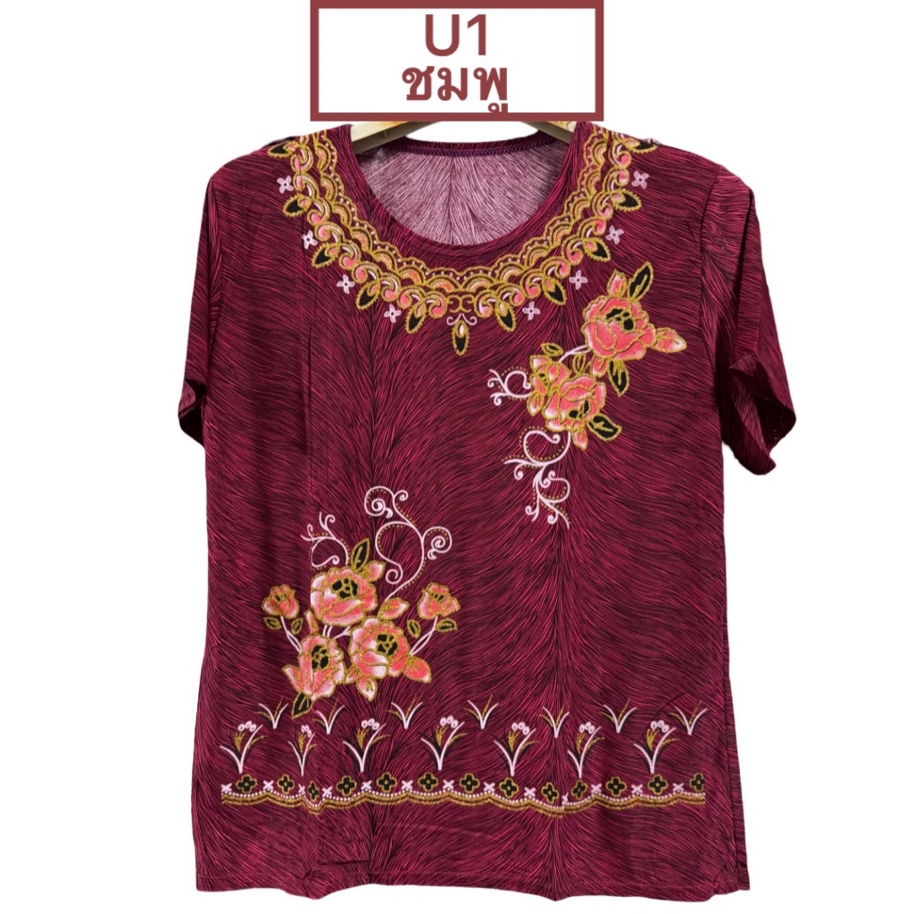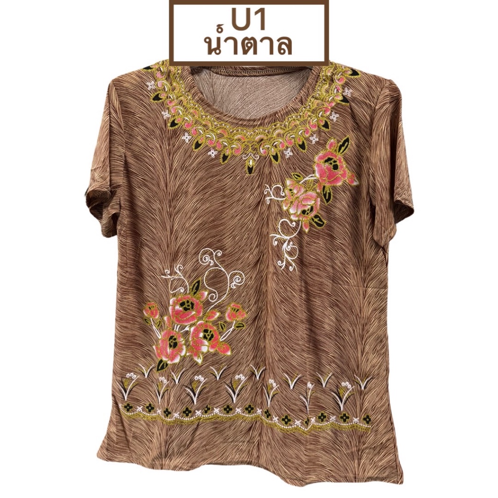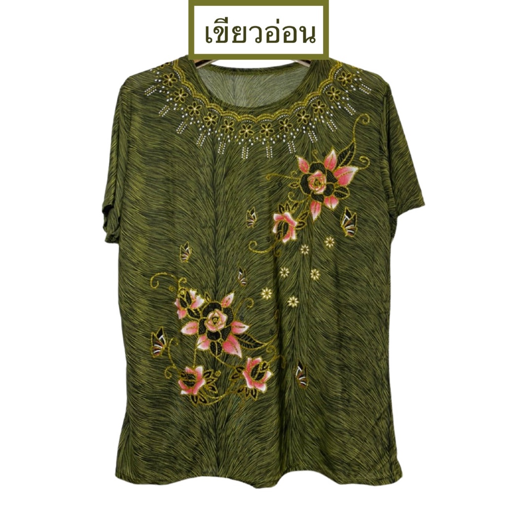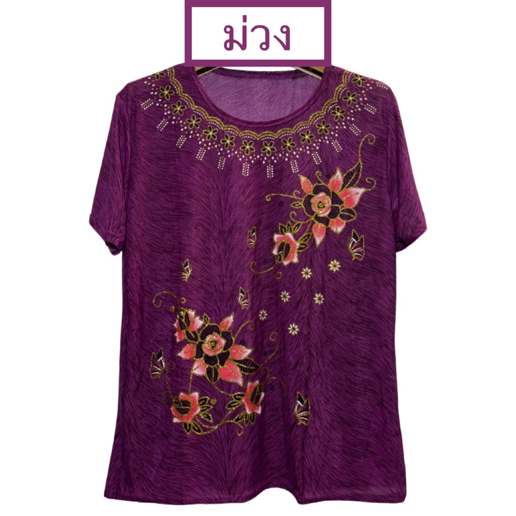 เสื้อคอมกลมผ้าพริ้ว งานผ้าเด้งเกาหลี