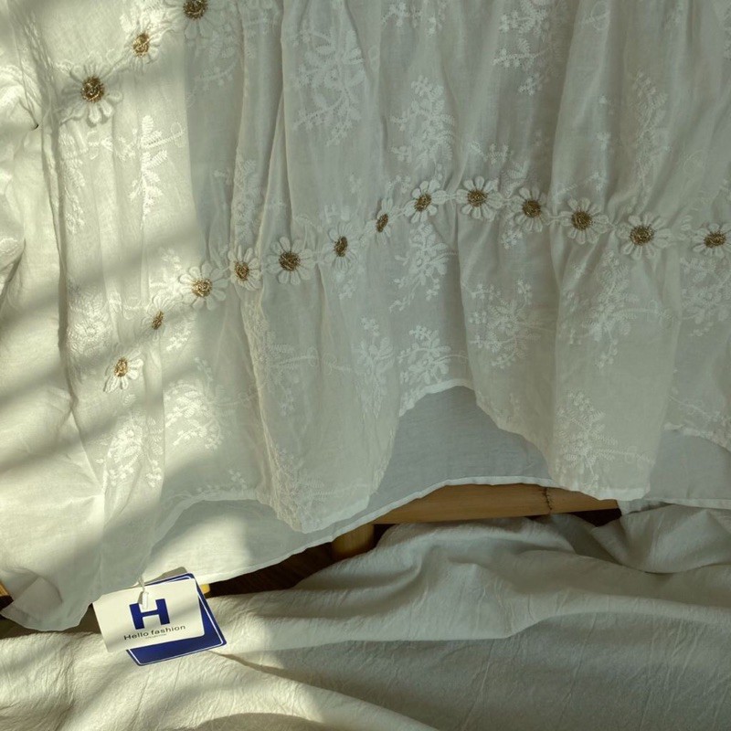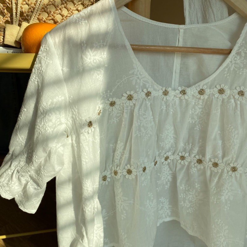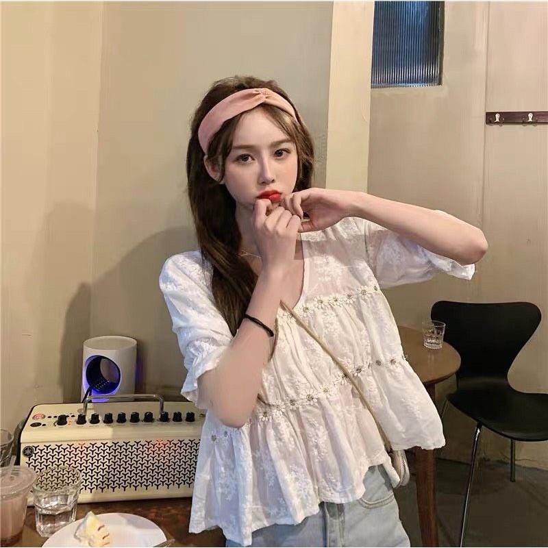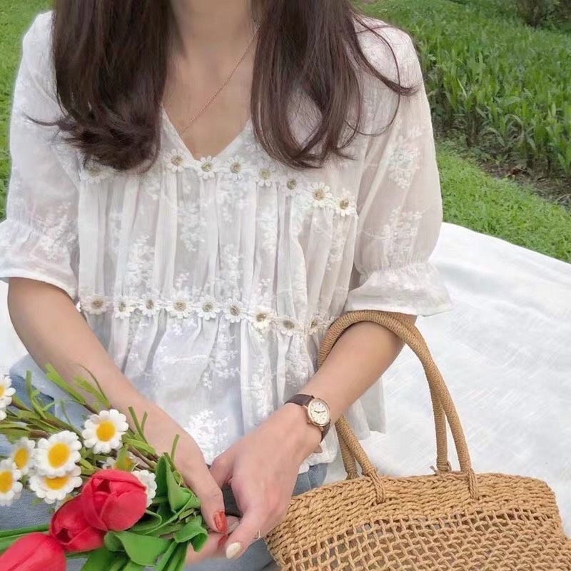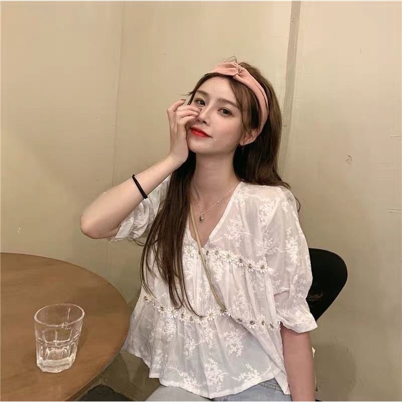 เสื้อคอวีแต่งลูกไม้ดอกเดซี่