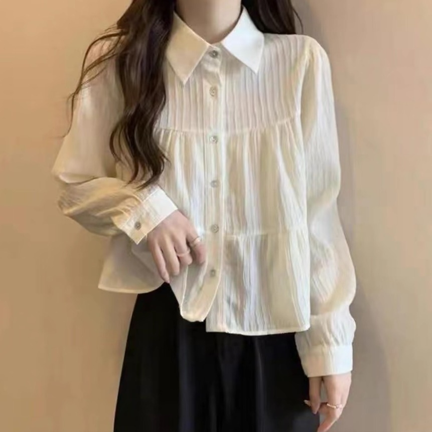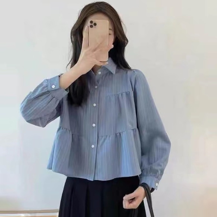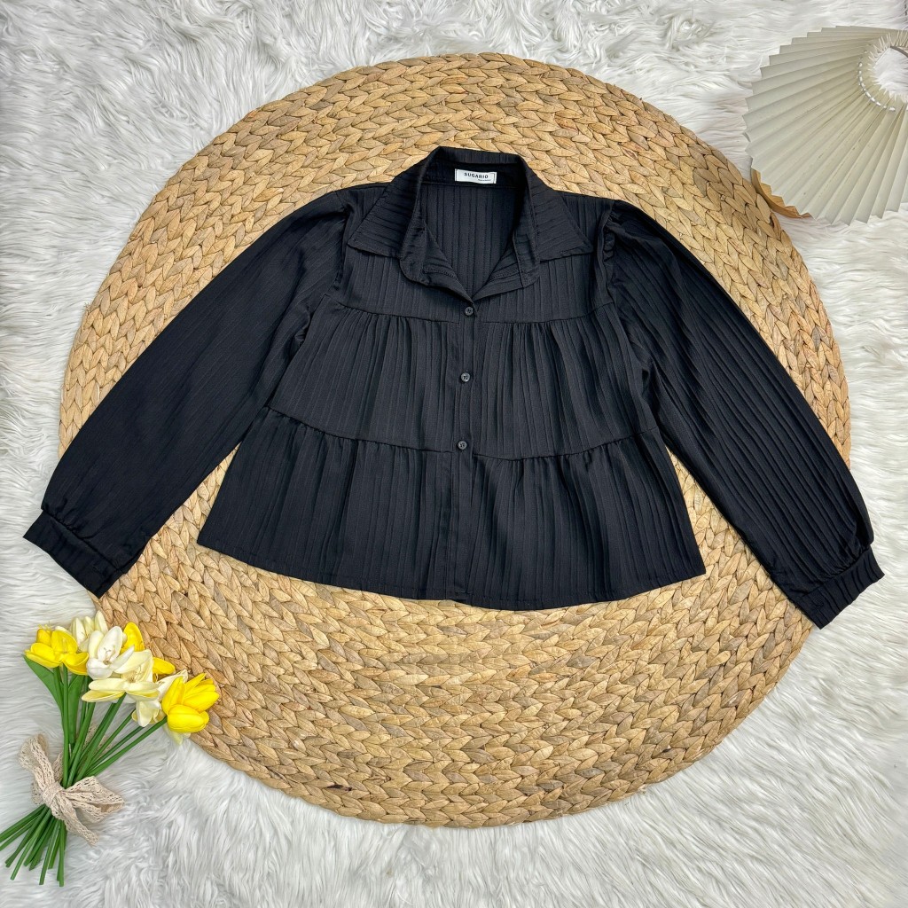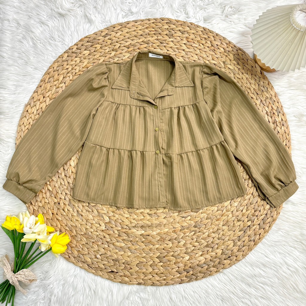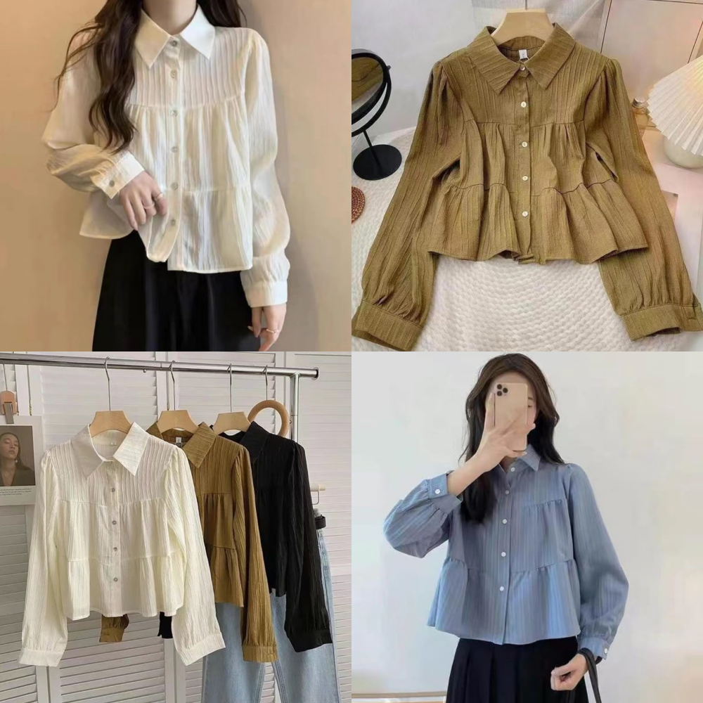 เสื้อผ้าด็อบบี้แขนยาวคอปกกระดุมหน้า A5331