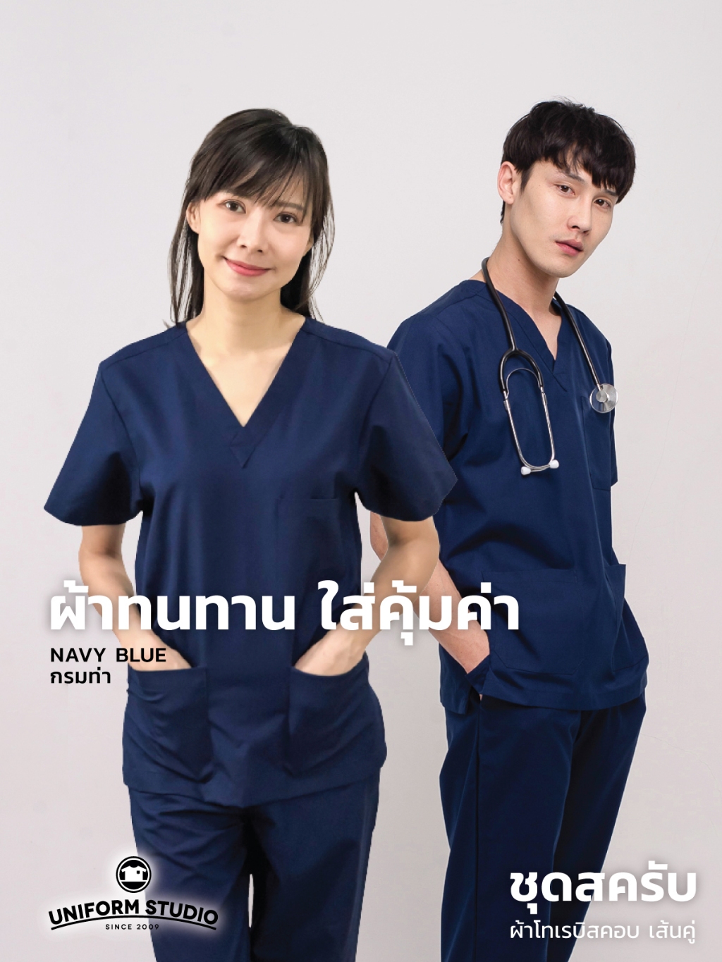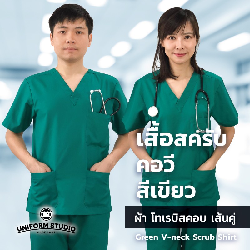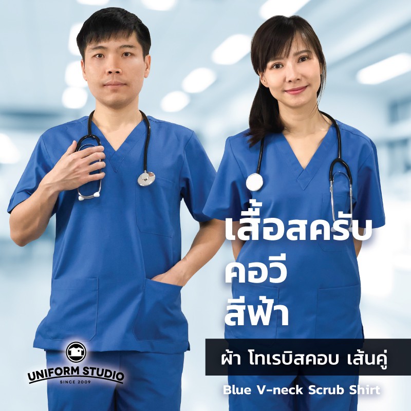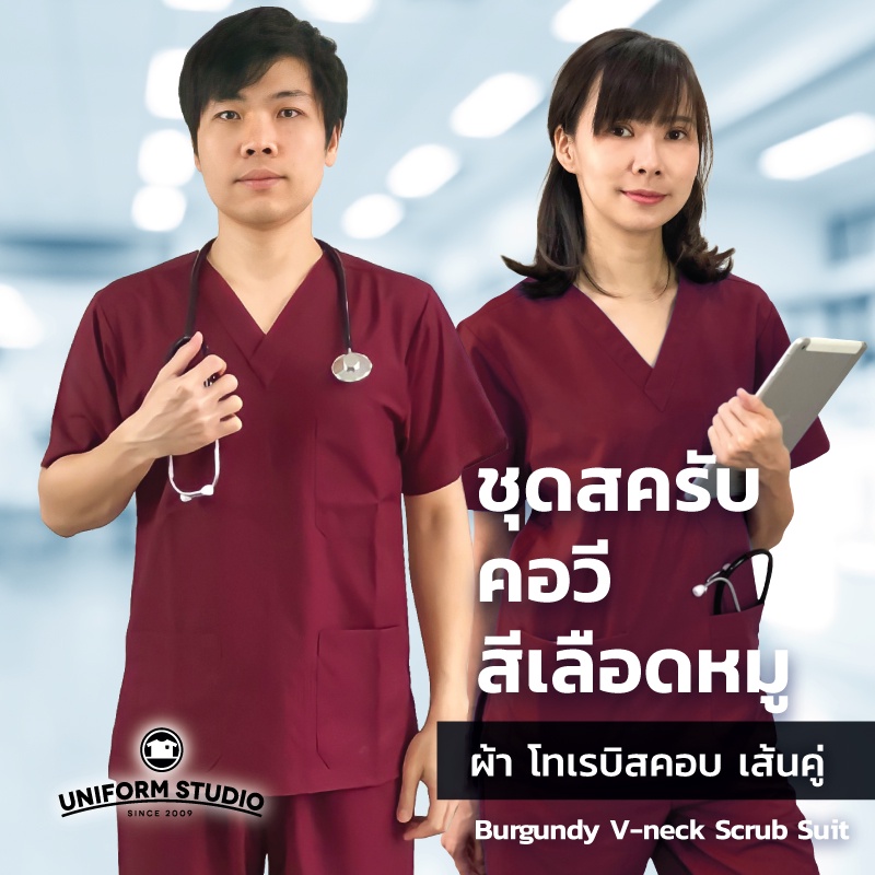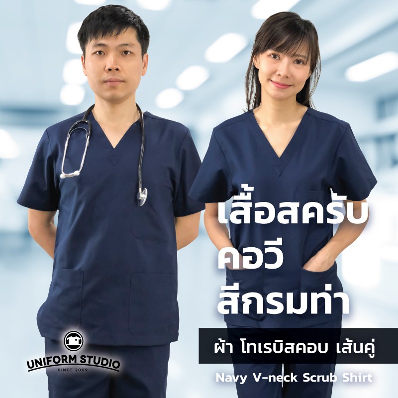 Uniform Studio ชุดสครับ Scrub แพทย์ พยาบาล โทนสีเข้ม ผ้าโทเรบิสคอบเส้นคู่ (จำหน่ายแยก เสื้อ/กางเกง)