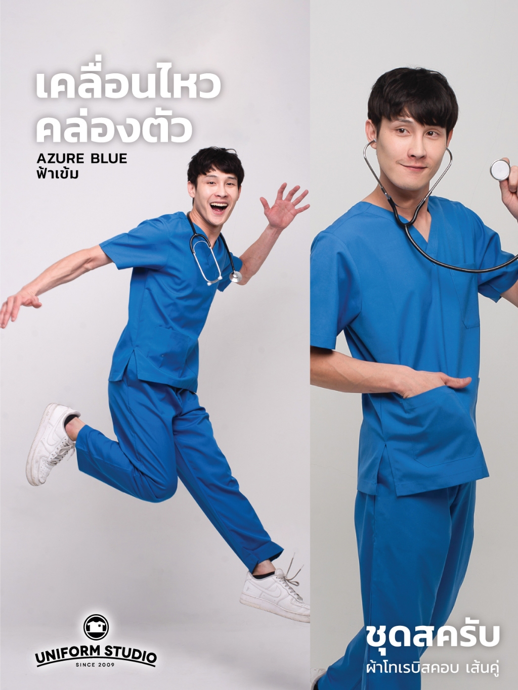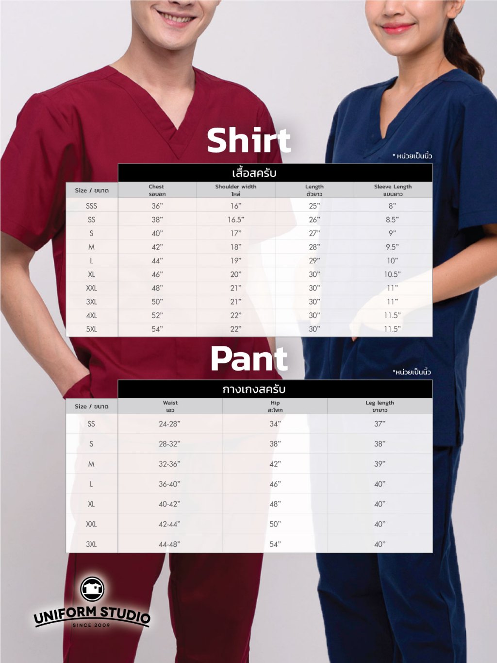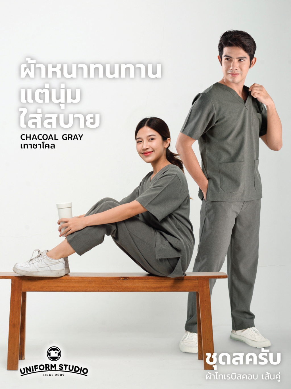 Uniform Studio ชุดสครับ Scrub แพทย์ พยาบาล โทนสีเข้ม ผ้าโทเรบิสคอบเส้นคู่ (จำหน่ายแยก เสื้อ/กางเกง)