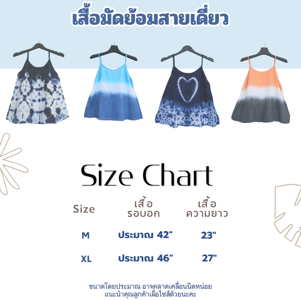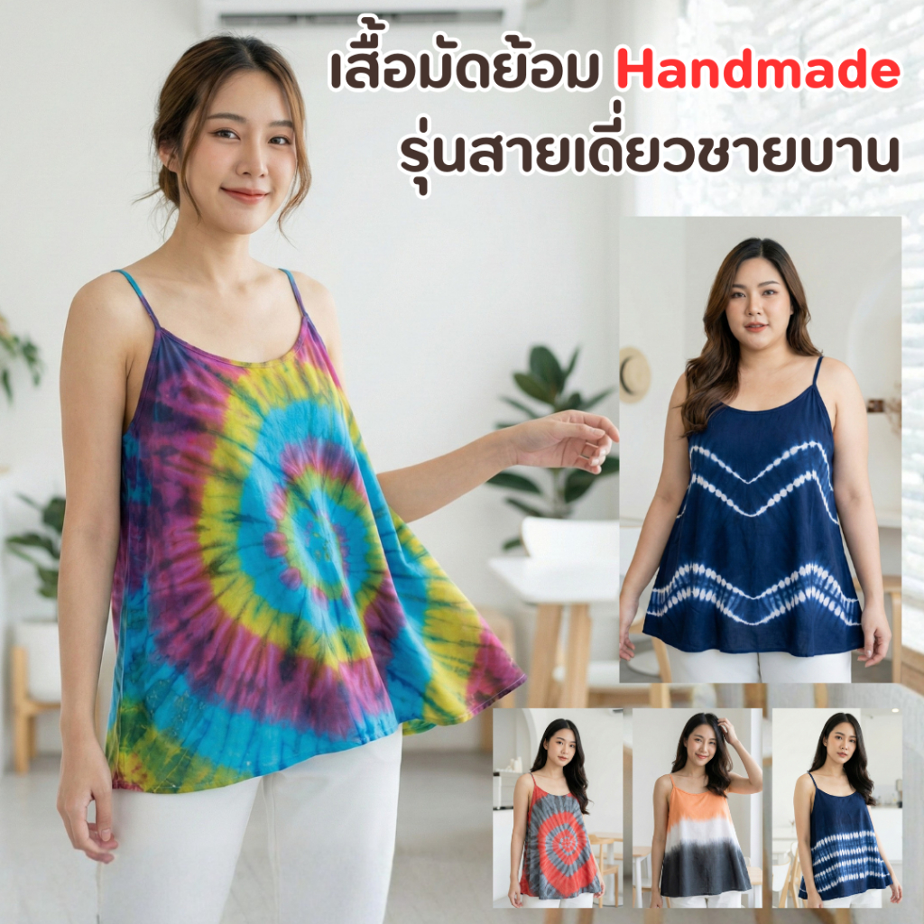เสื้อสายเดี่ยวมัดย้อม งาน Handmade จากลำพูน มีหลายไซส์ หลายสี