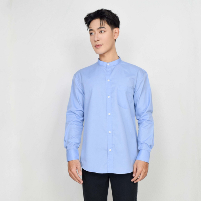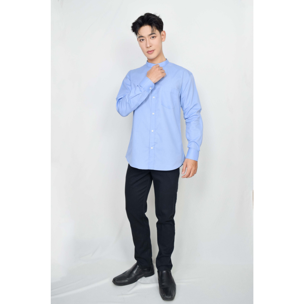 🚛🇹🇭 เสื้อเชิ้ตผู้ชายแขนยาว เชิ้ตคอจีน เสื้อทำงานผู้ชาย ใส่ได้ทั้งทำงาน ใส่เที่ยว เชิ้ตชาย พร้อมส่ง