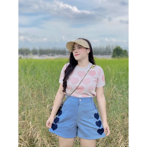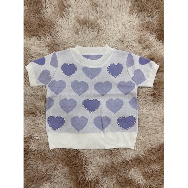 เสื้อไหมพรม สาวอวบ สีขาว ปักหัวใจไขมุก