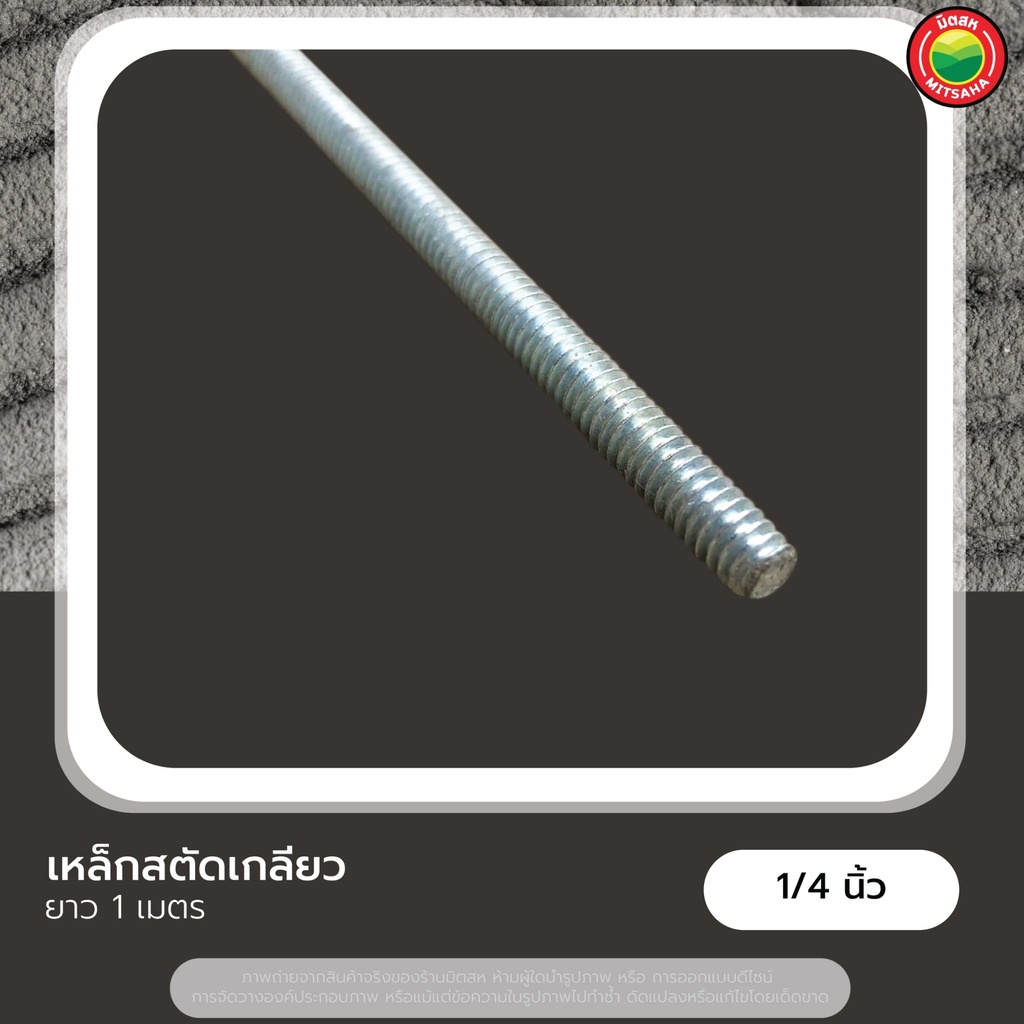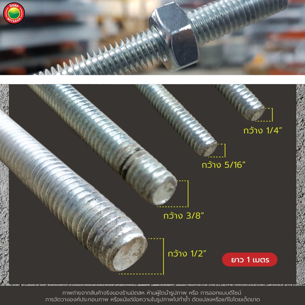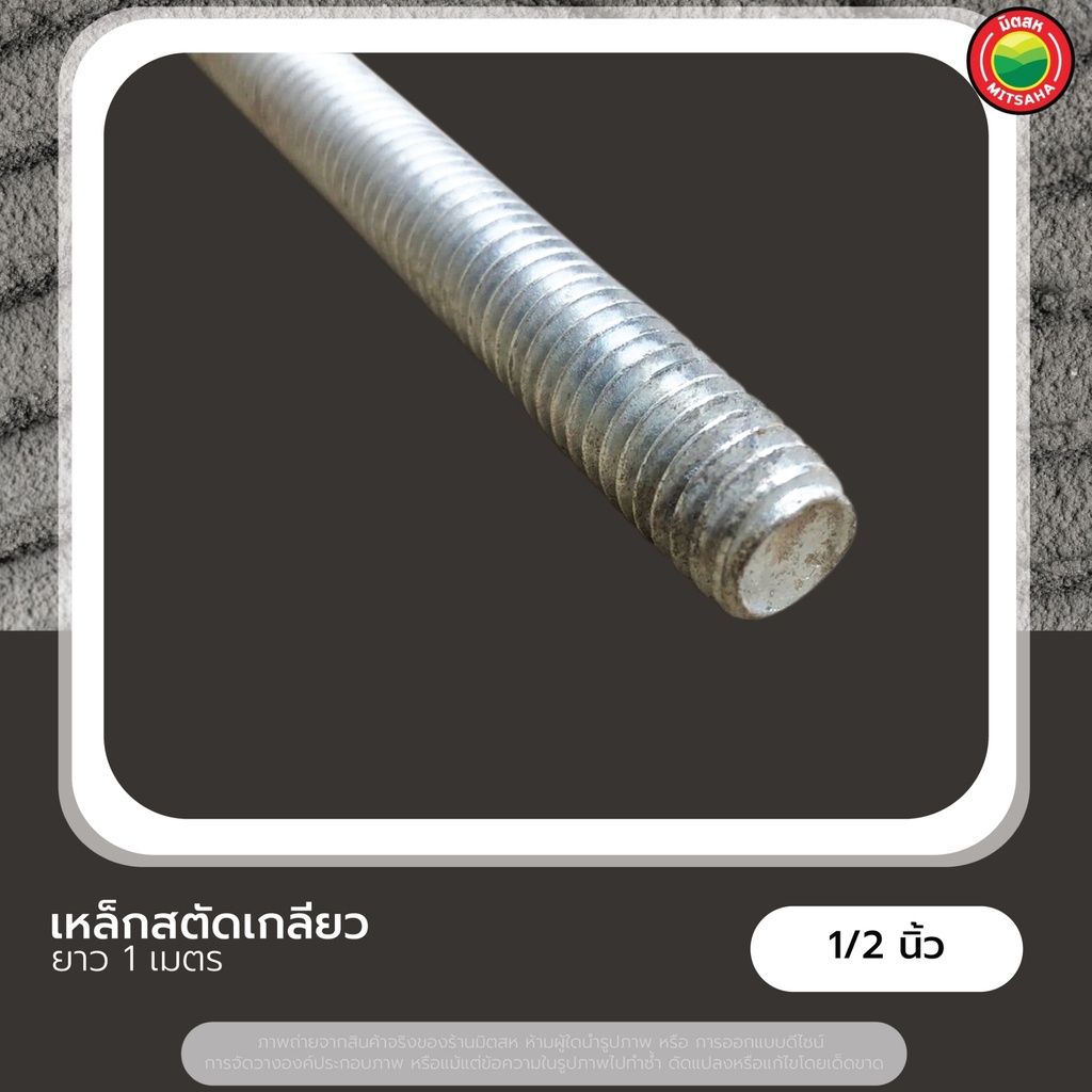 เหล็กสตัด เกลียวตลอด ยาว 1m ขนาด 1/4", 5/16", 3/8", 1/2" THREADED STEEL เหล็ก สตัด แท่ง เส้น เกลียว ชุบขาว ยึด ติด มิตสห