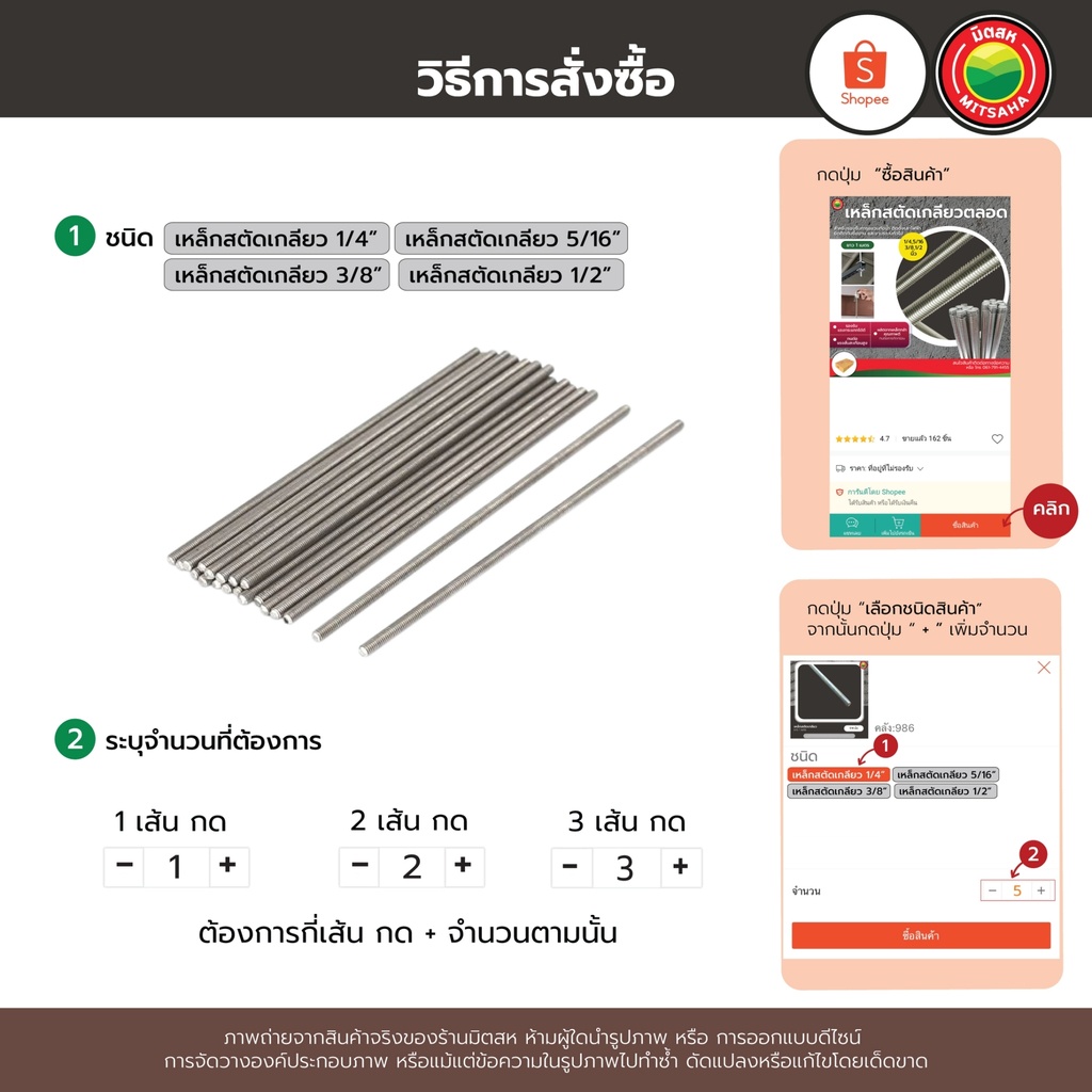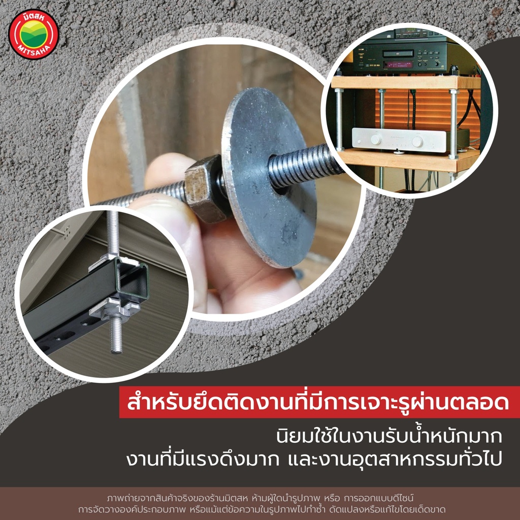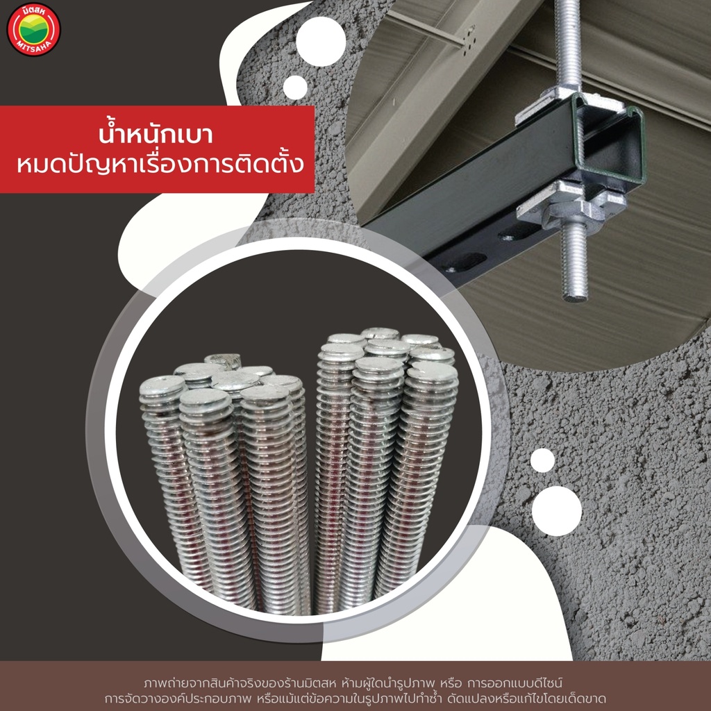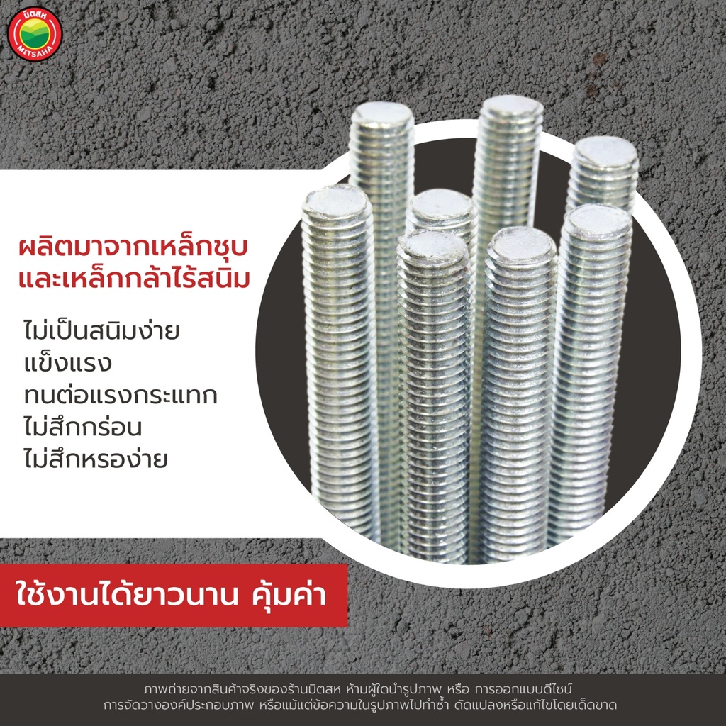 เหล็กสตัด เกลียวตลอด ยาว 1m ขนาด 1/4", 5/16", 3/8", 1/2" THREADED STEEL เหล็ก สตัด แท่ง เส้น เกลียว ชุบขาว ยึด ติด มิตสห