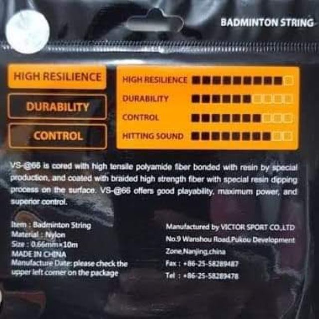 เอ็นไม้แบด Victor VS-66 0.66 mm High Resilience Hard Feeling