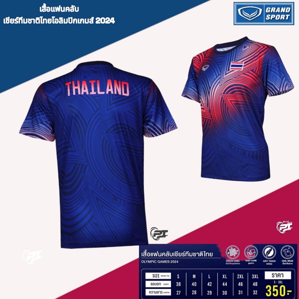 แกรนด์สปอร์ต เสื้อทีมชาติไทย โอลิมปิก 2024 (ลิขสิทธ์แท้) ลายเดียวกับนักกีฬา พร้อมส่ง เสื้อโอลิมปิก Olimpic Games 2024