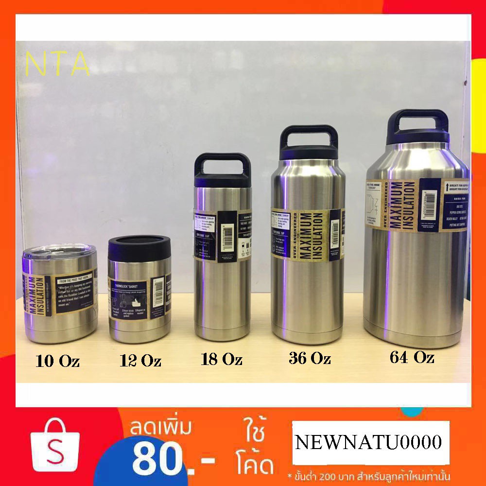 แก้วกระติกน้ำ ขนาด 10,12,18,36,64Oz แก้วเก็บอุณหภูมิความเย็น,ร้อน เป็นสแตนเลส304ไม่มีไอน้ำ