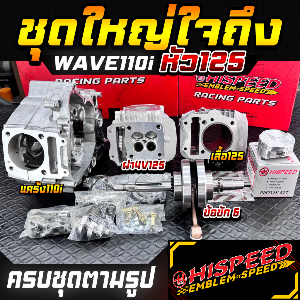 แคร้งหล่อ WAVE110i ใส่ฝาสูบ 125 ปี 11-2020 + ฝาสูบRANG 4 วาล์ว + เสื้อสูบ + ข้อ 6 มม.|HISPEED x RANG