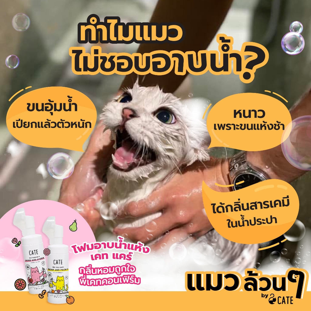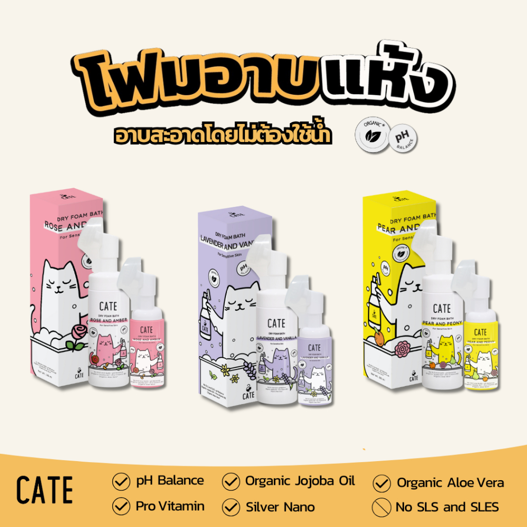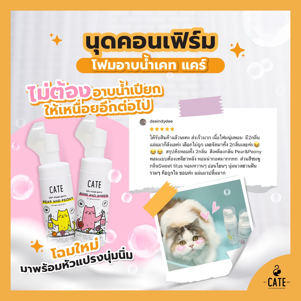 CATE เคท แชมพูโฟมอาบน้ำแห้งออแกนิก กลิ่นโรส แอมเบอร์ อาบสะอาดโดยไม่ต้องใช้น้ำ