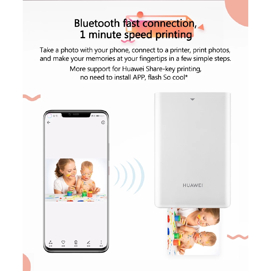 แท้100% Huawei CV80 Zink เครื่องพิมพ์ภาพแบบพกพา Honor Pocket เครื่องพิมพ์ Bluetooth 4.1 รองรับ DIY Share 500mAh AR เครื่องพิมพ์ huawei การพิมพ์กระดาษพิมพ์กระดาษ Huawei CV80 Zink Portable Photo Printer huawei Printing Paper Print Paper