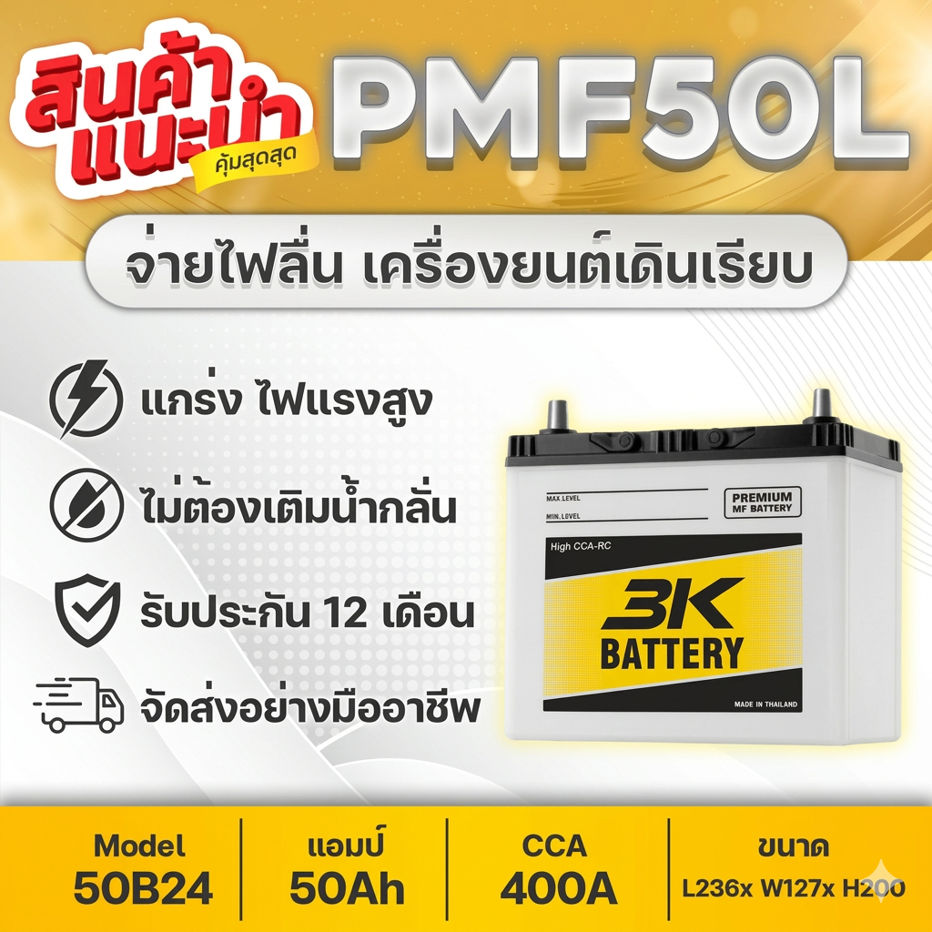 3K PMF50L 12V.50Ah แบตเตอรี่รถยนต์ [รถเก๋ง] สินค้าใหม่! แกะกล่องใช้งานได้ทันที ขายดีอันดับ 1