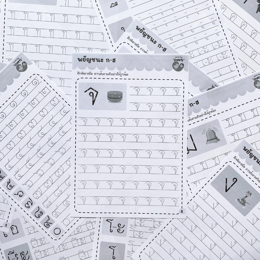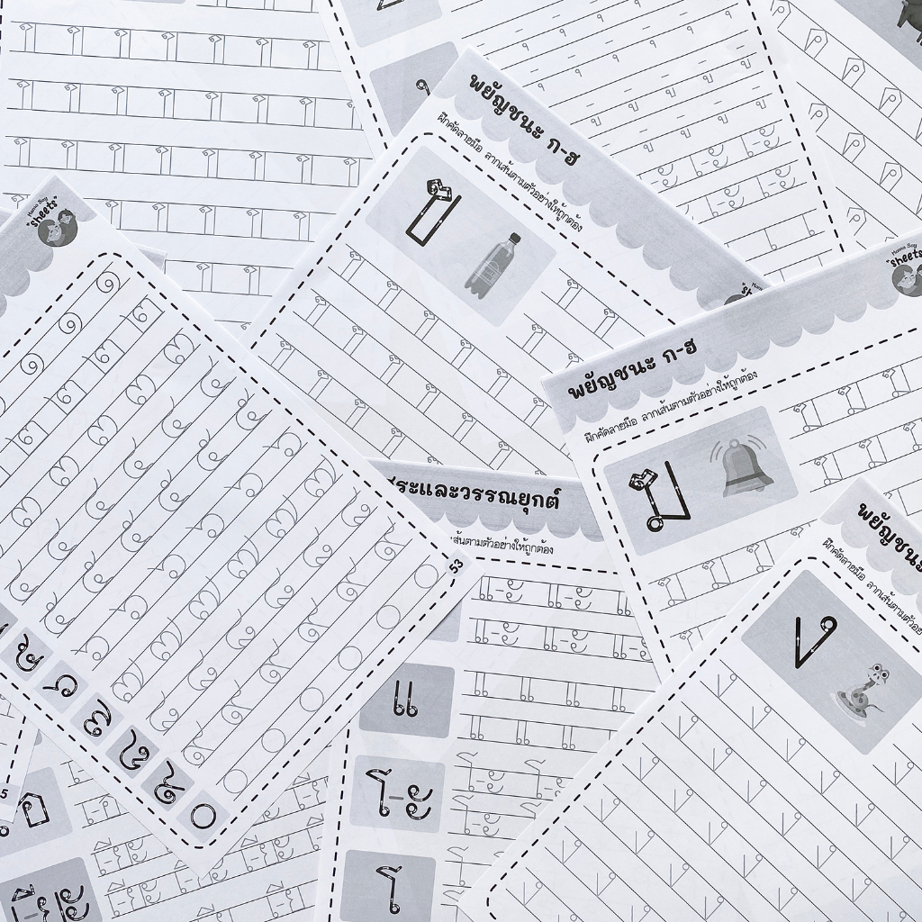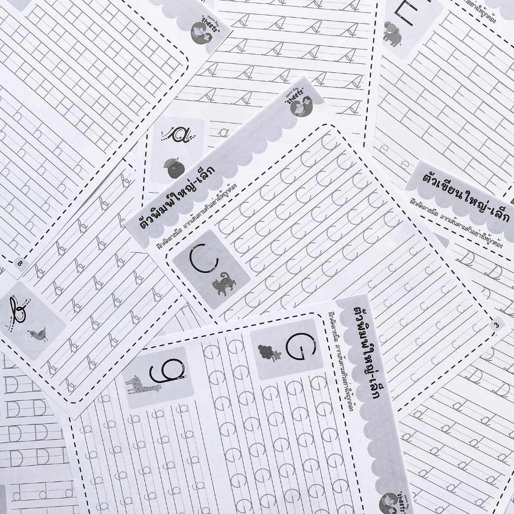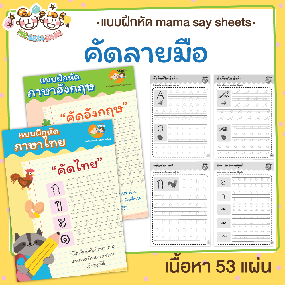 แบบฝึกหัด [[ คัดลายมือ ไทย อังกฤษ ตัวเลข ]] ชีท เกม กิจกรรม สำหรับเด็ก (mama say sheets) Mebestbook