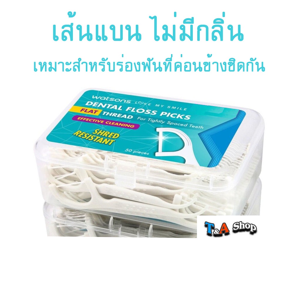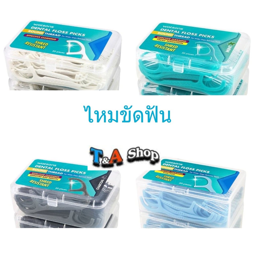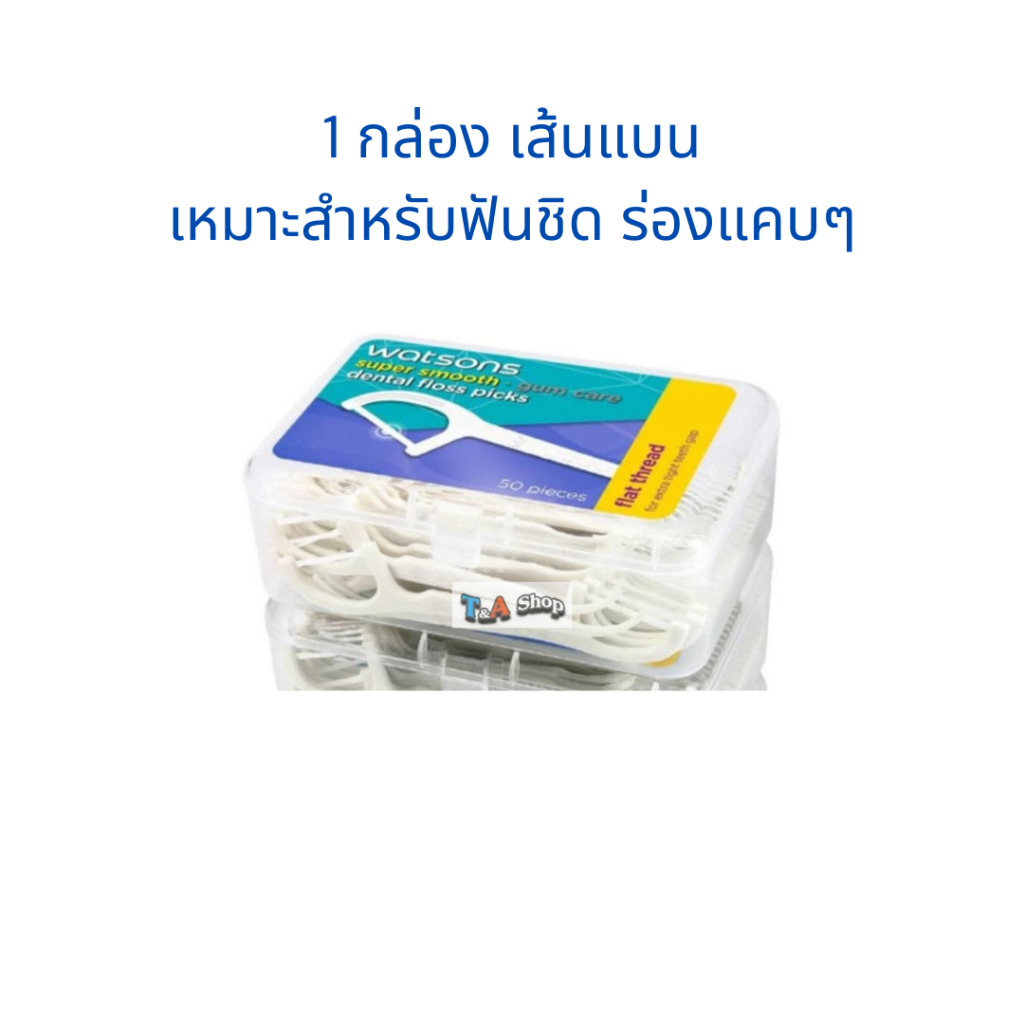 มีส่งด่วน รุ่นใหม่ แบบ >1< กล่อง ไหมขัดฟัน วัตสัน ซูเปอร์สมูธ กล่อง 50 ชิ้น Watsons Dental Floss