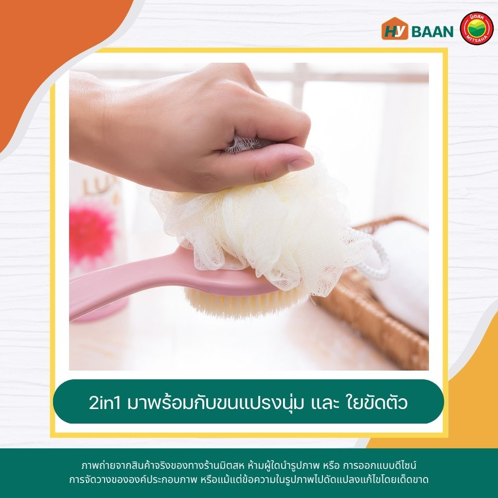แปรงอาบน้ำ 2หัว body brush 2in1 ขนาด 17x36cm สี ฟ้า เขียว ชมพู แปรง ใยขัด ฟองน้ำ ถู ตัว หลัง อาบน้ำ ด้ามยาว มิตสห Hybann