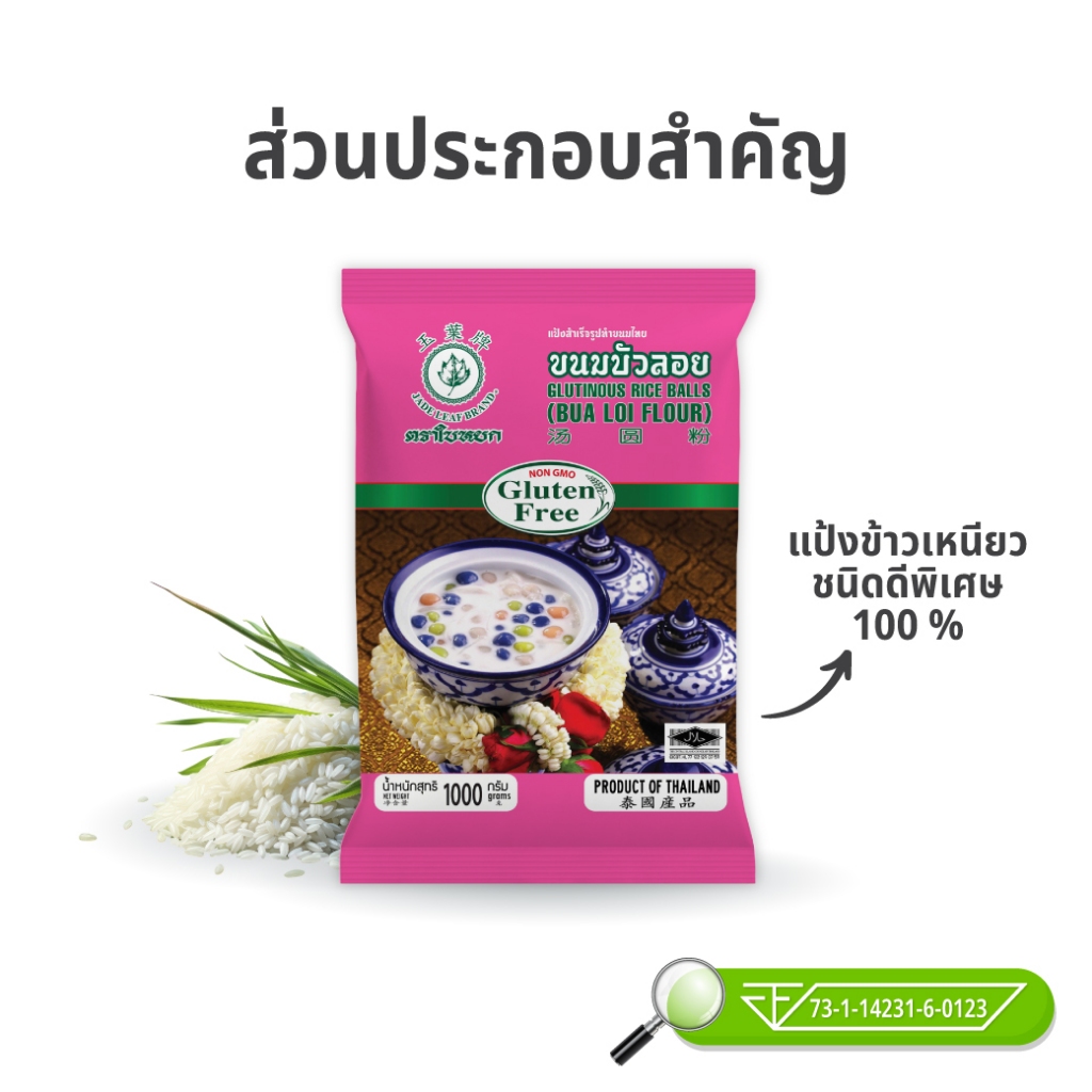 แป้งทำขนมบัวลอยสำเร็จรูป ตราใบหยก 1 kg.
