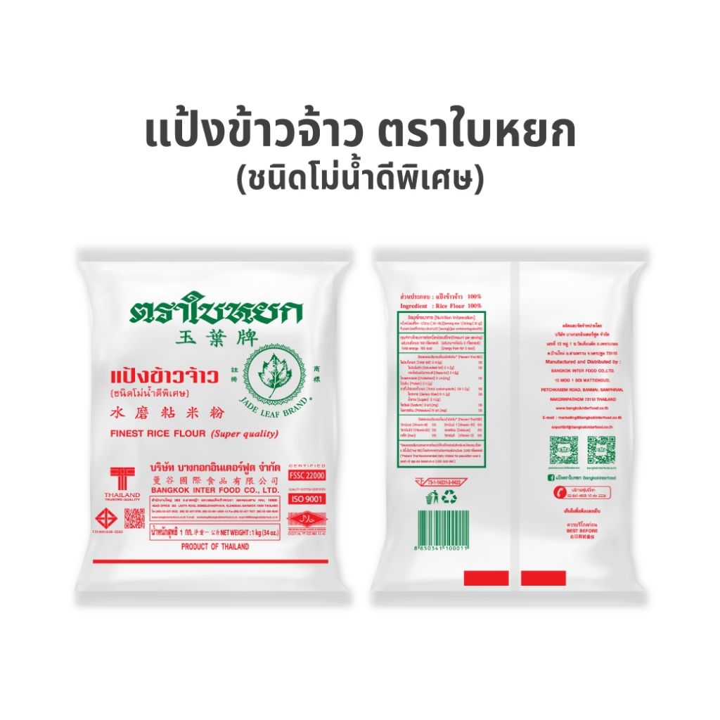 แป้งข้าวจ้าว ตราใบหยก ขนาด 1 kg.