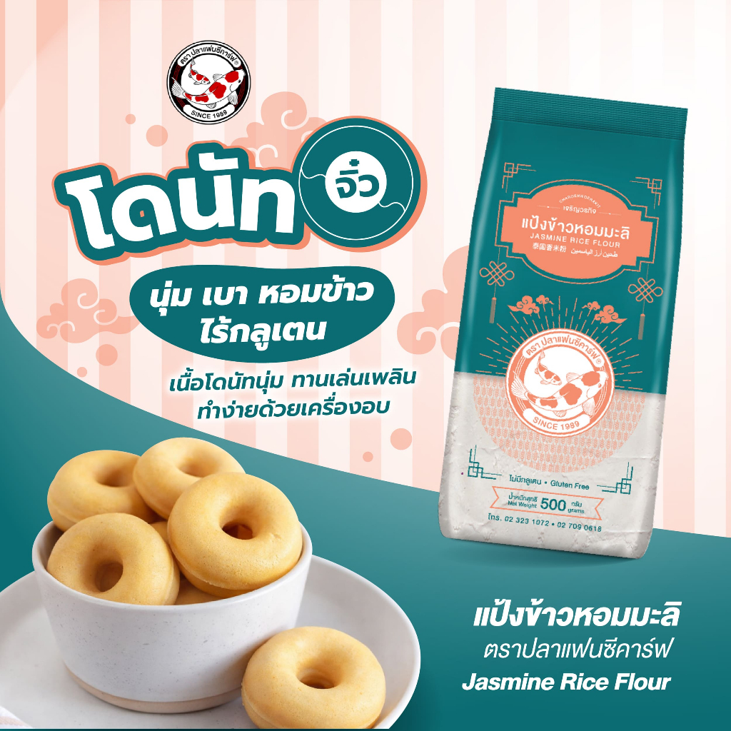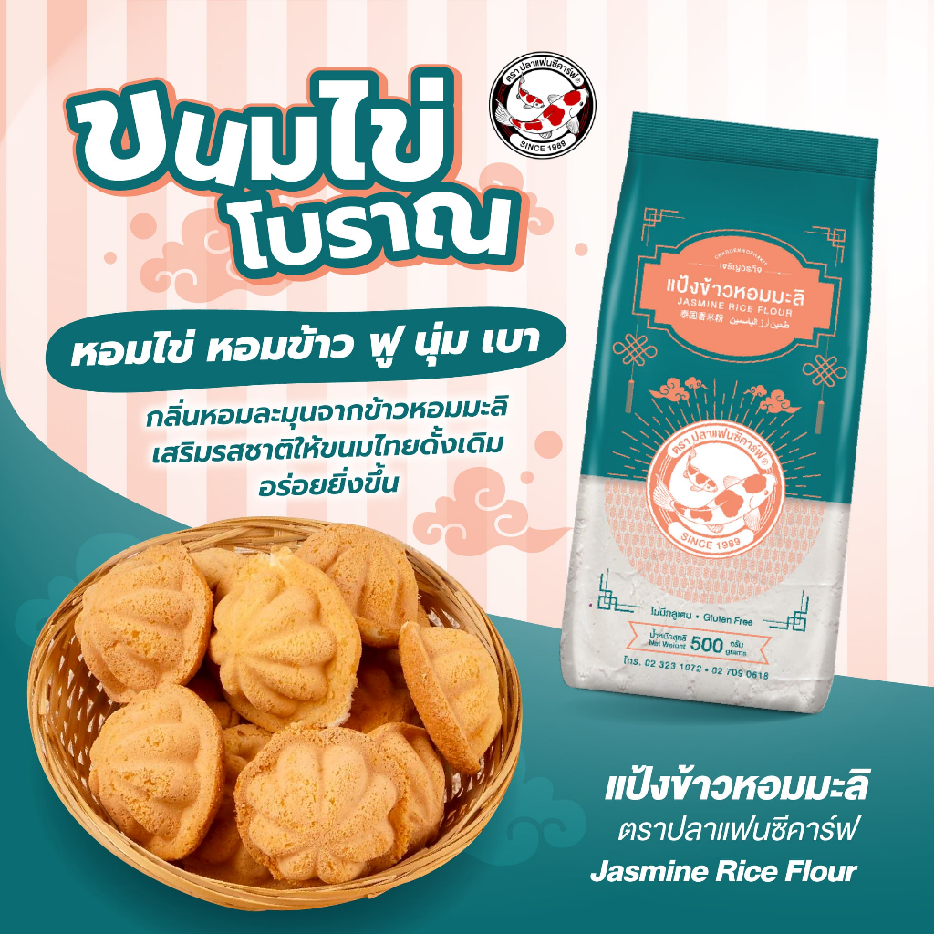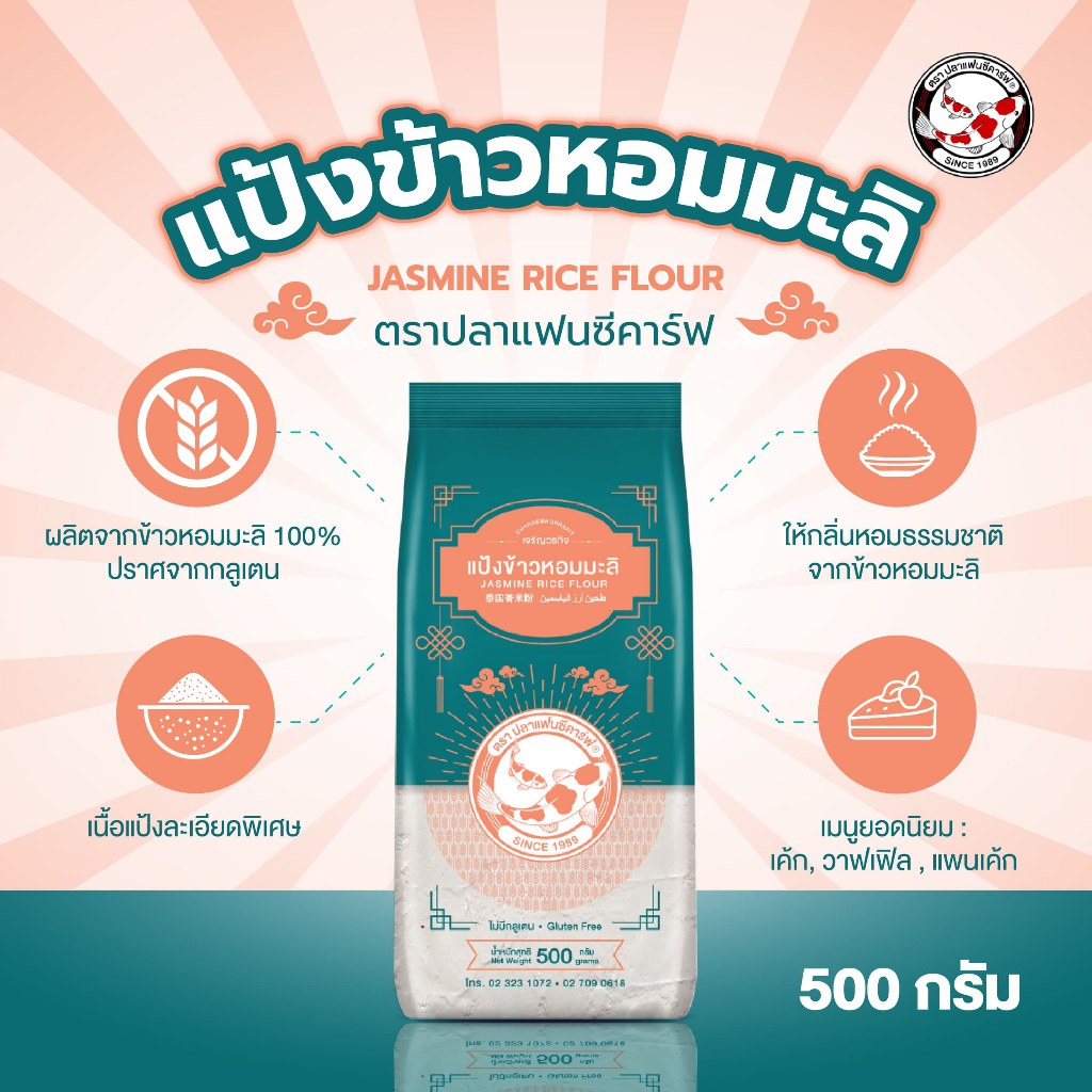 แป้งข้าวหอมมะลิ ตราปลาแฟนซีคาร์ฟ ขนาด 500 กรัม || Jasmine Rice Flour Fancy Carp Brand 500g || 泰国香米粉 || طحين أرز الياسمين