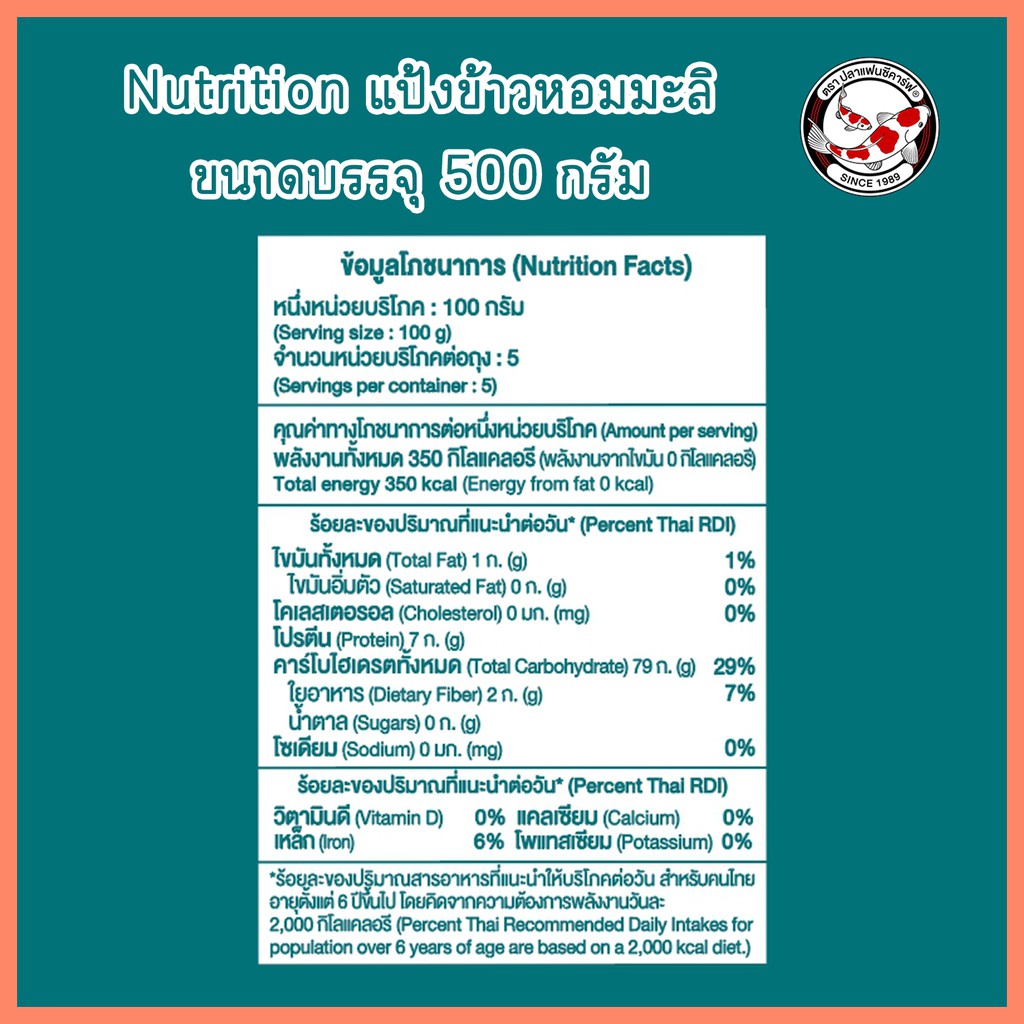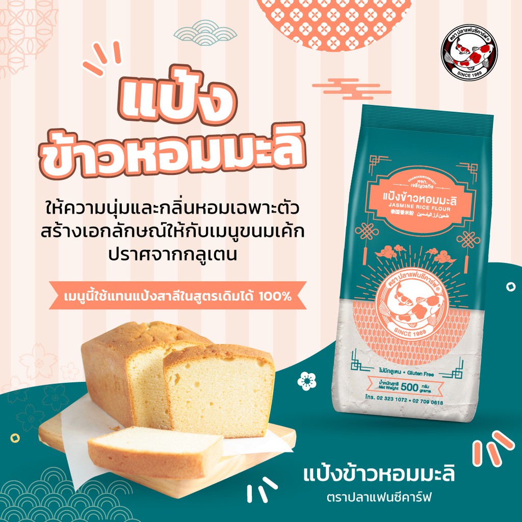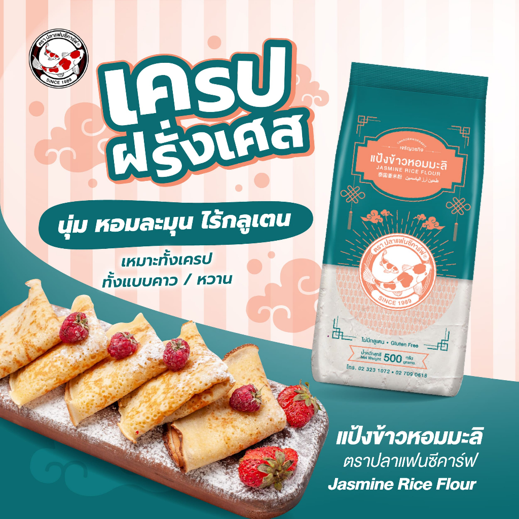 แป้งข้าวหอมมะลิ ตราปลาแฟนซีคาร์ฟ ขนาด 500 กรัม || Jasmine Rice Flour Fancy Carp Brand 500g || 泰国香米粉 || طحين أرز الياسمين