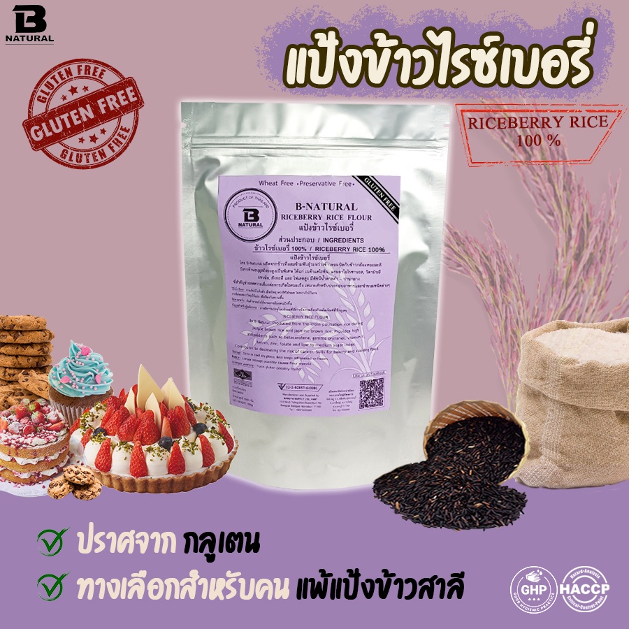 แป้งข้าวไรซ์เบอรี่ 1000กรัม (Gluten Free)